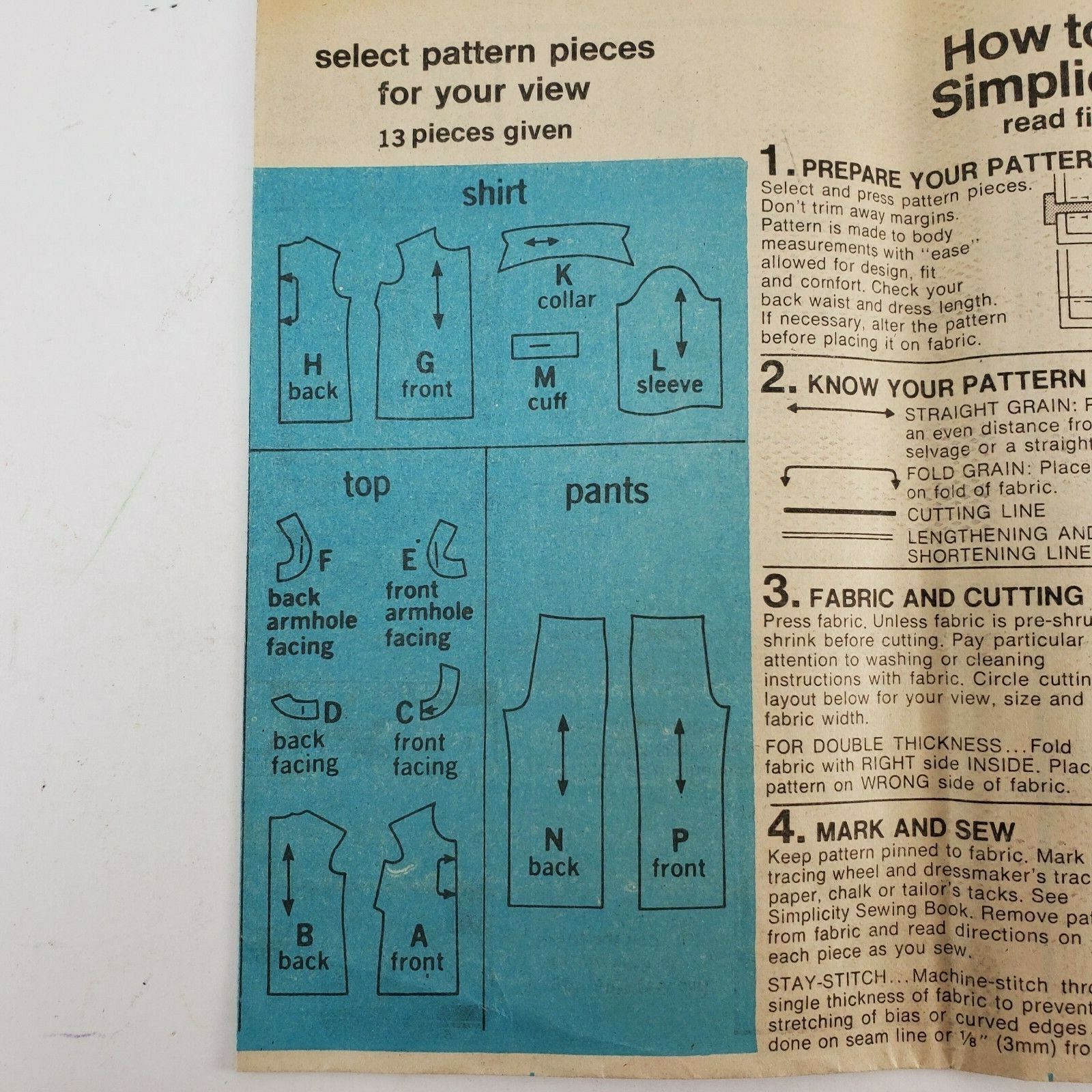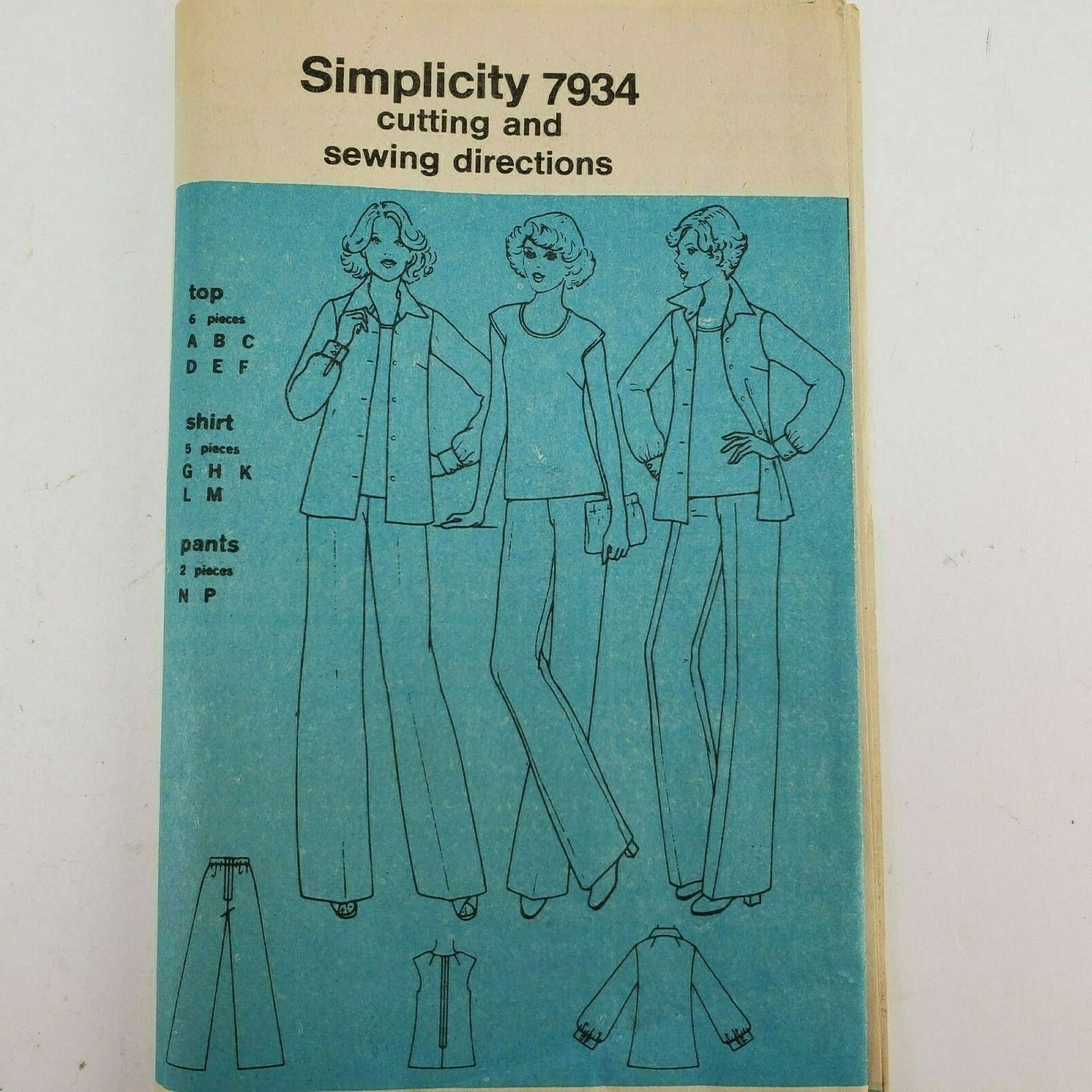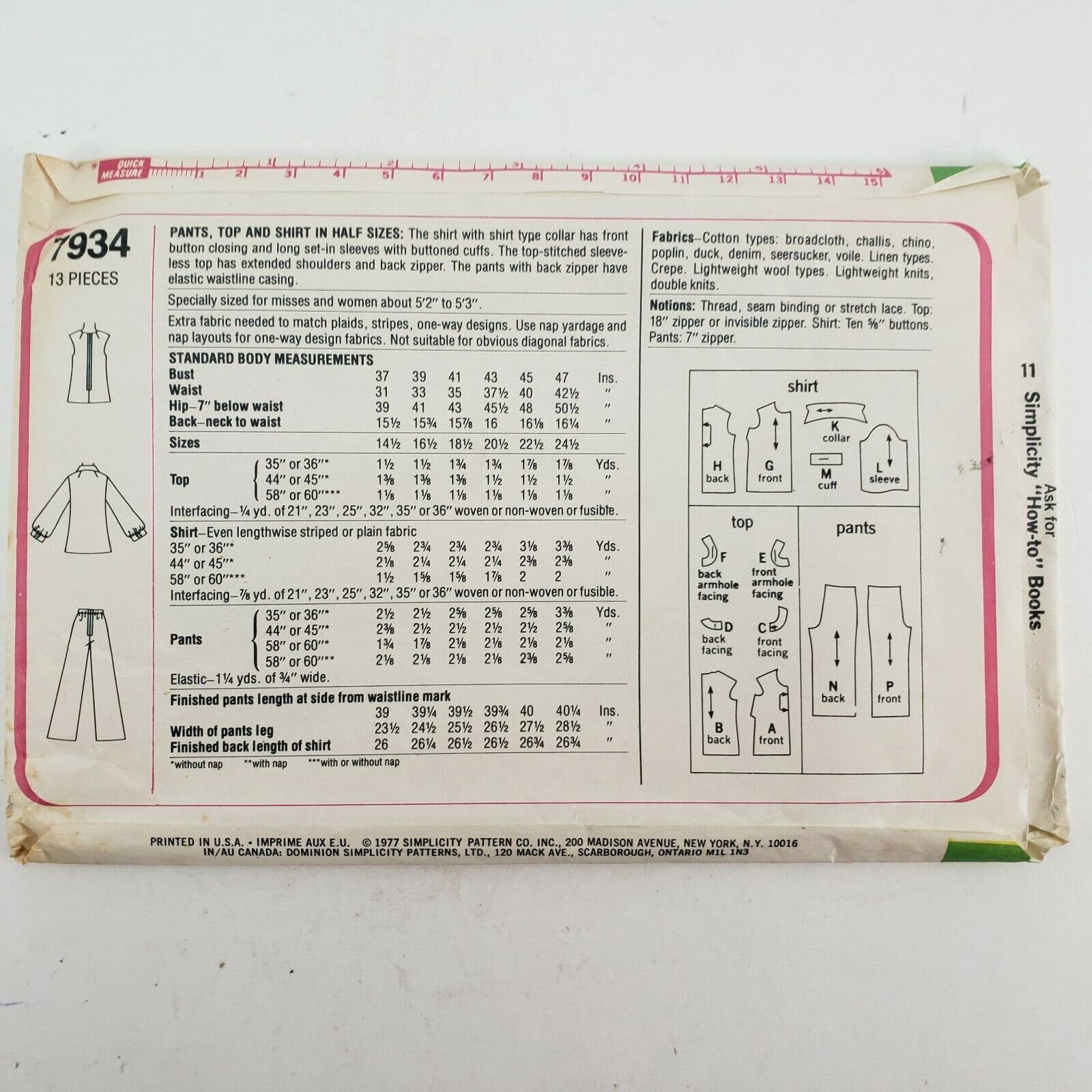 Simplicity Printed Sewing Pattern 7934 Women Top Shirt & Pants 16½ 18½ Vintage