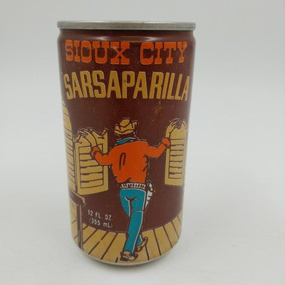 Sioux City Sarsaparilla Chocolate Soda Pop Empty Can with Cowboy 12oz 2.25" x 5"