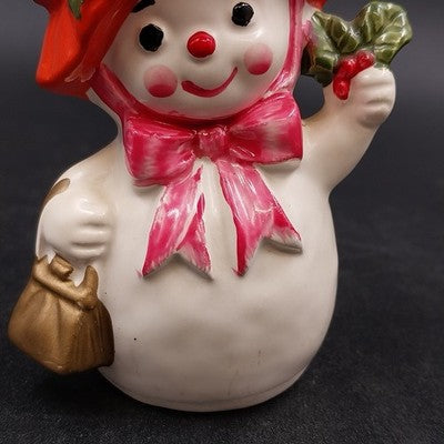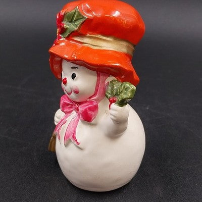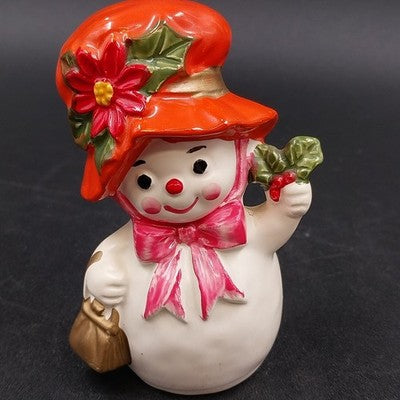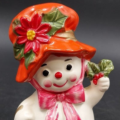 Charming vintage 1960 Napcoware figurine featuring a Snow Woman wearing a festive hat with holly accents. A classic mid-century holiday collectible from Japan, this piece makes a wonderful addition to seasonal décor or a Napcoware collection.