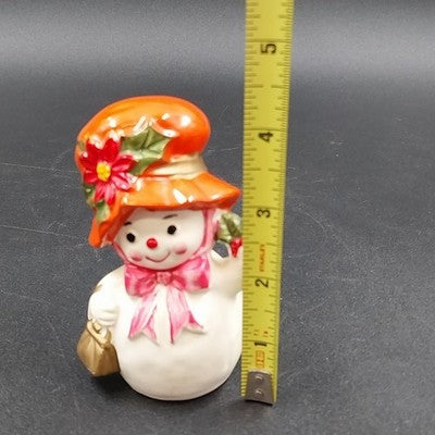 Snow Woman Ceramic with Hat Napcoware X-8828 Holly Christmas Japan Figurine 1960