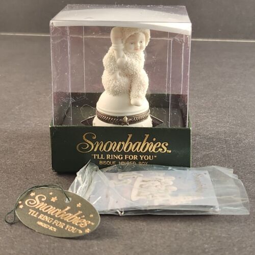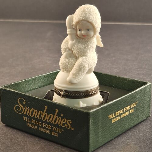Snowbabies Dept 56 Bisque Hinged Box I'LL RING FOR YOU 68928 Retired 7"