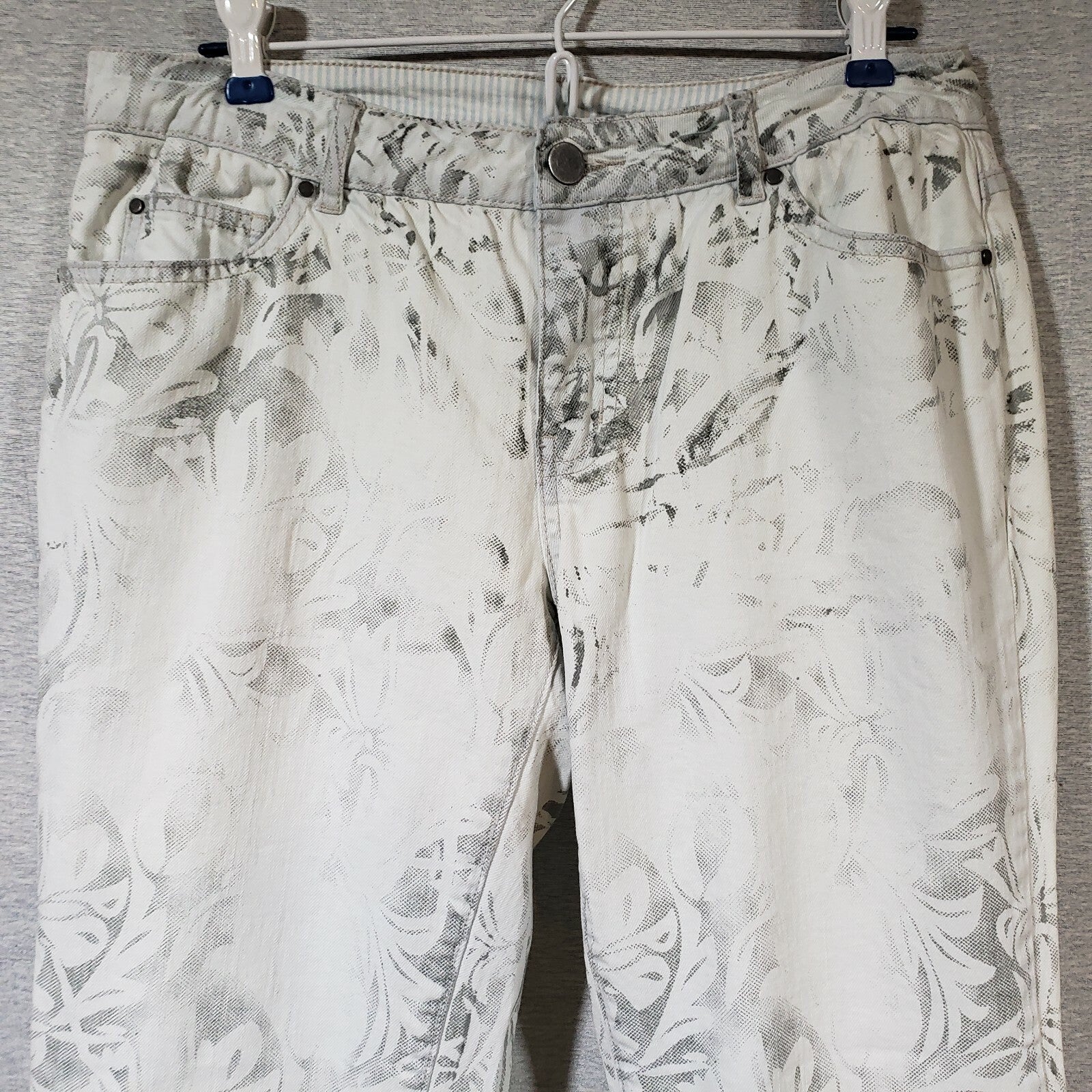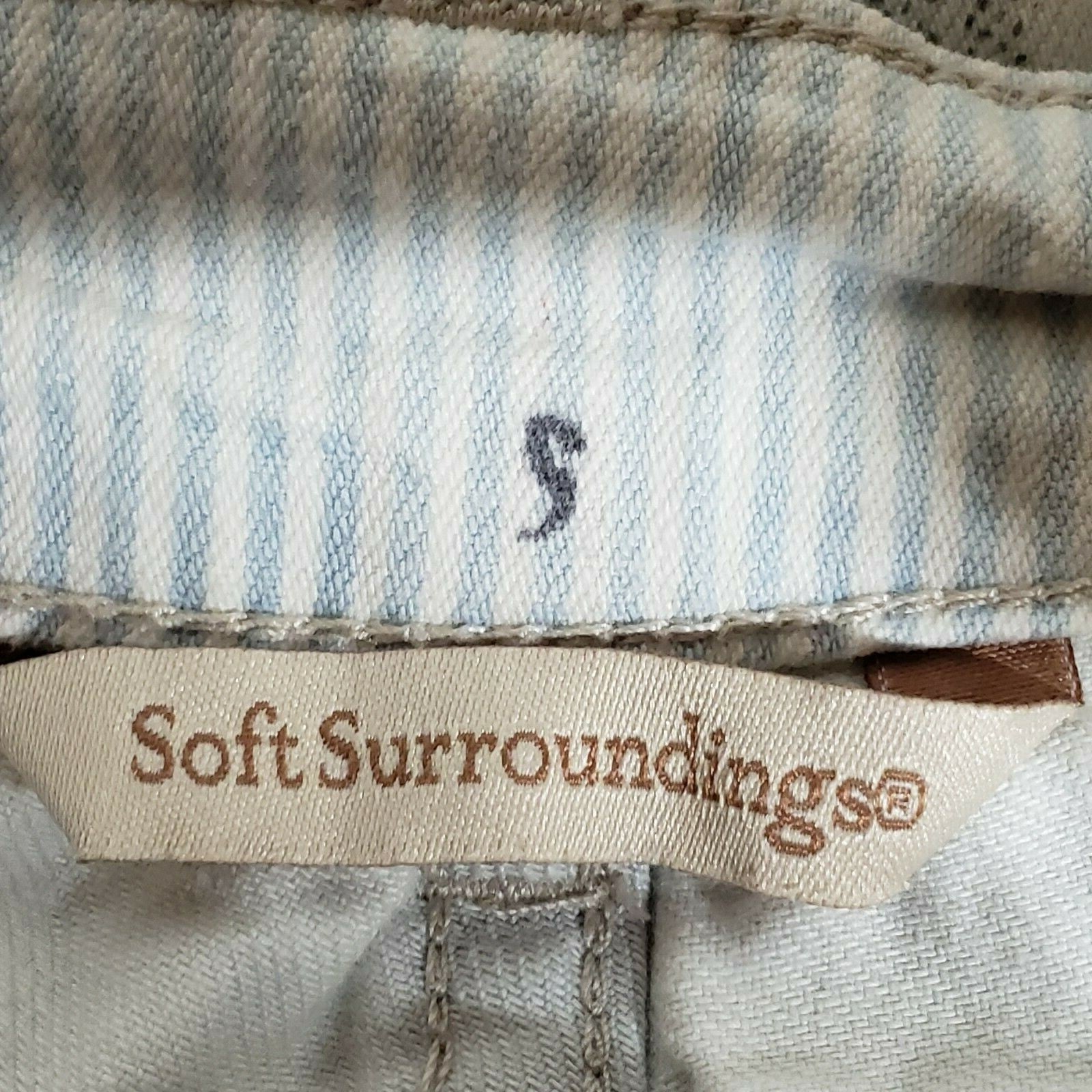 Elevate your casual wardrobe with these Soft Surroundings skinny jeans featuring a soft white wash with a subtle faded floral print. Crafted with stretch denim for comfort and a flattering fit, these jeans combine style and flexibility in a timeless design.