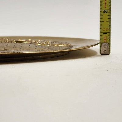 Solid Brass Charger Plate Engraved Temple Yin Yang Asian Dragons Heavy 11.5"