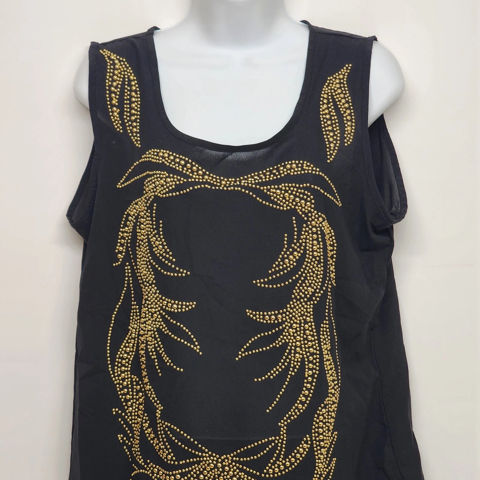 Solution Black Tank Top Large Gold Beaded Cotton Polyester Embellished Glam Vtg