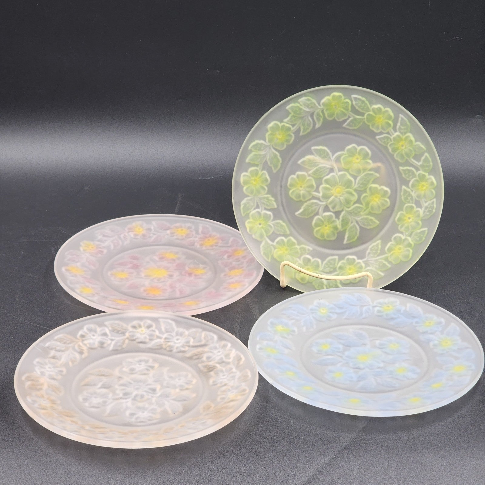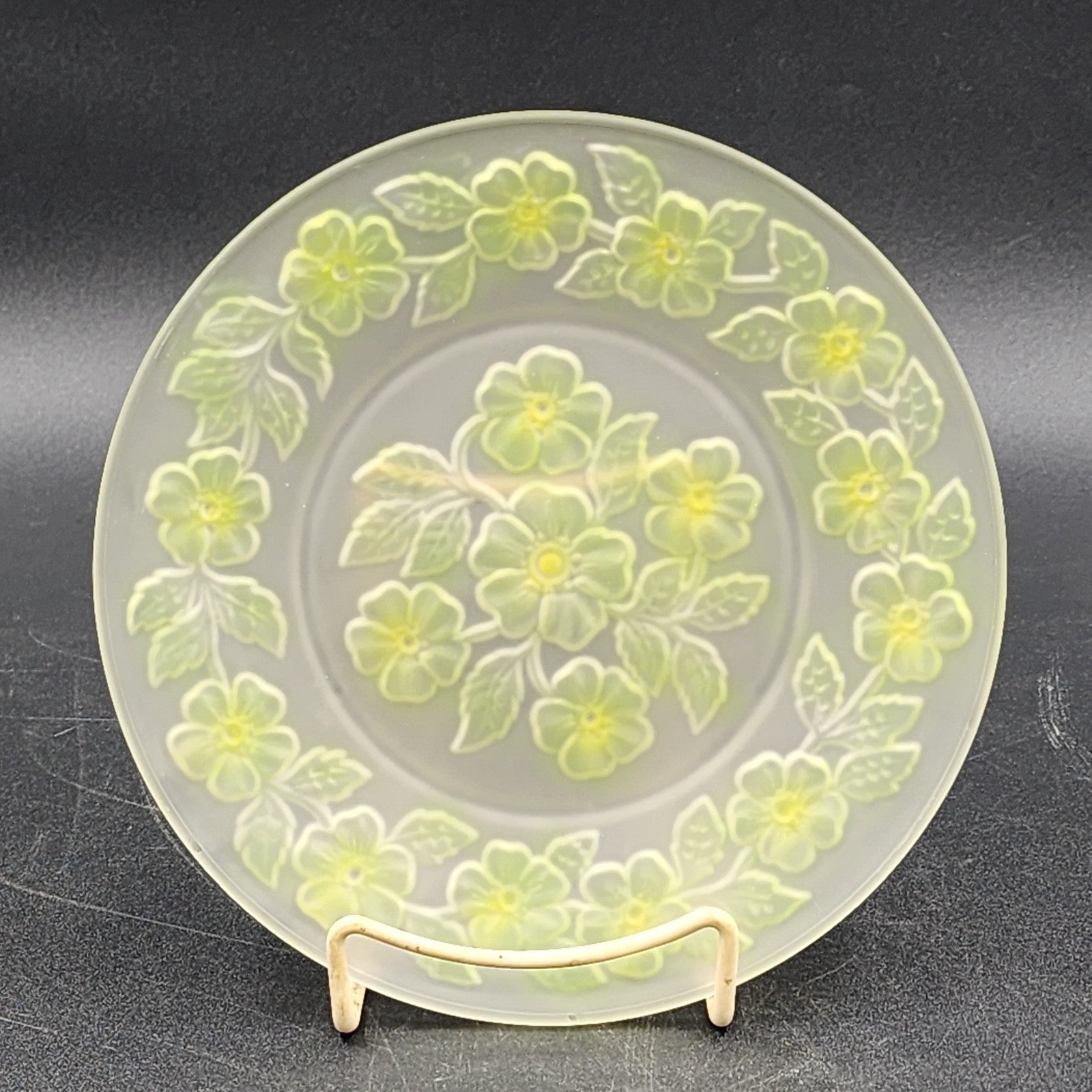 This vintage Sovereign House luncheon plate features the elegant Apple Blossom SVG1 pattern in soft frosted glass with delicate color hues. A timeless piece perfect for dining, display, or completing your collection.