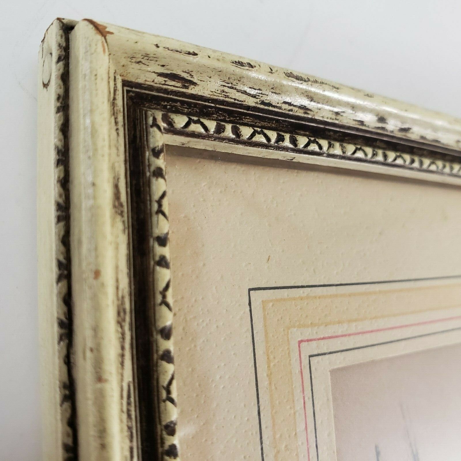Condition: Excellent Vintage - print, matting, and frame are very nice; paper back has visible nail heads; frame has blonde-and-black rub finish