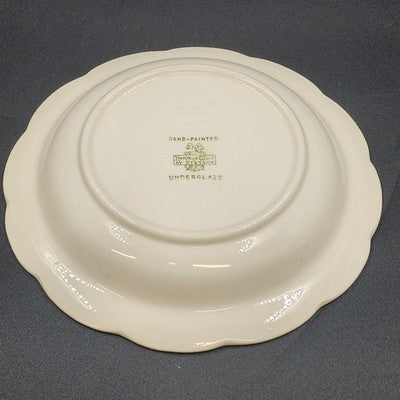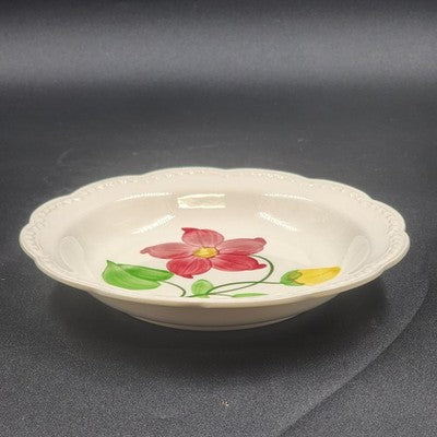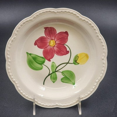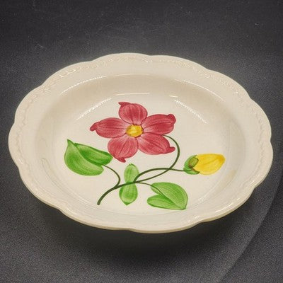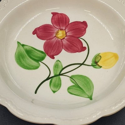 Add a charming touch of mid-century Americana to your table with this Stetson Pottery "Joy" soup bowl. Hand painted with bright red and yellow flowers, this vintage 1950s piece reflects classic style and warm nostalgia. Perfect for collectors or daily use.