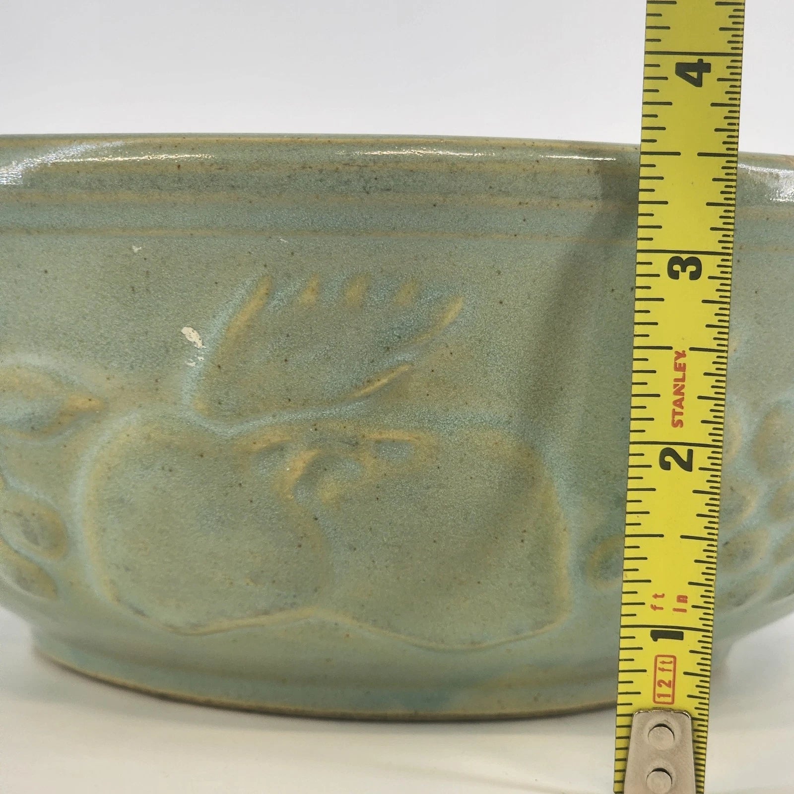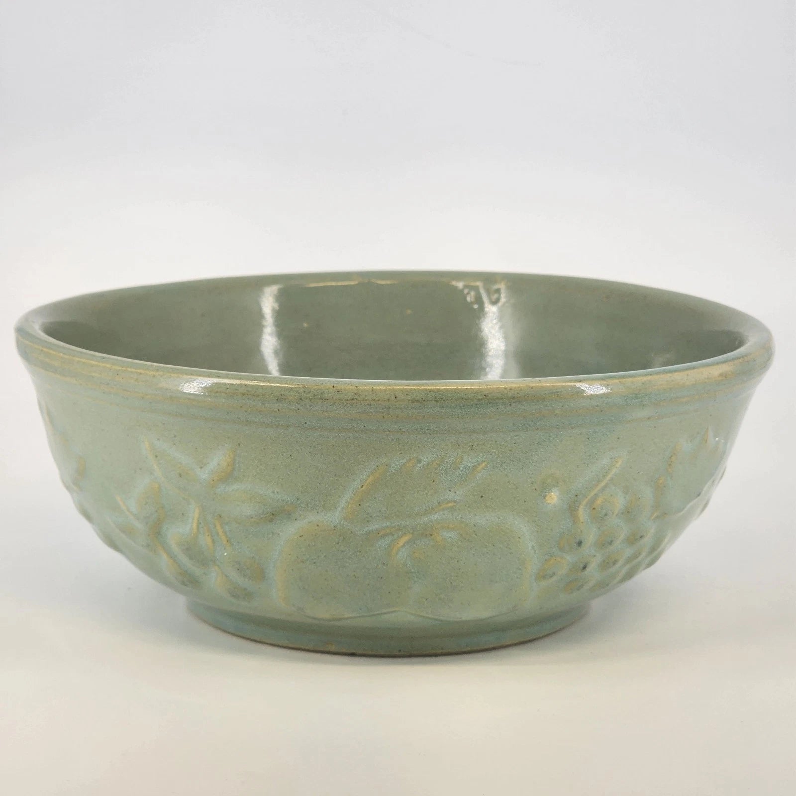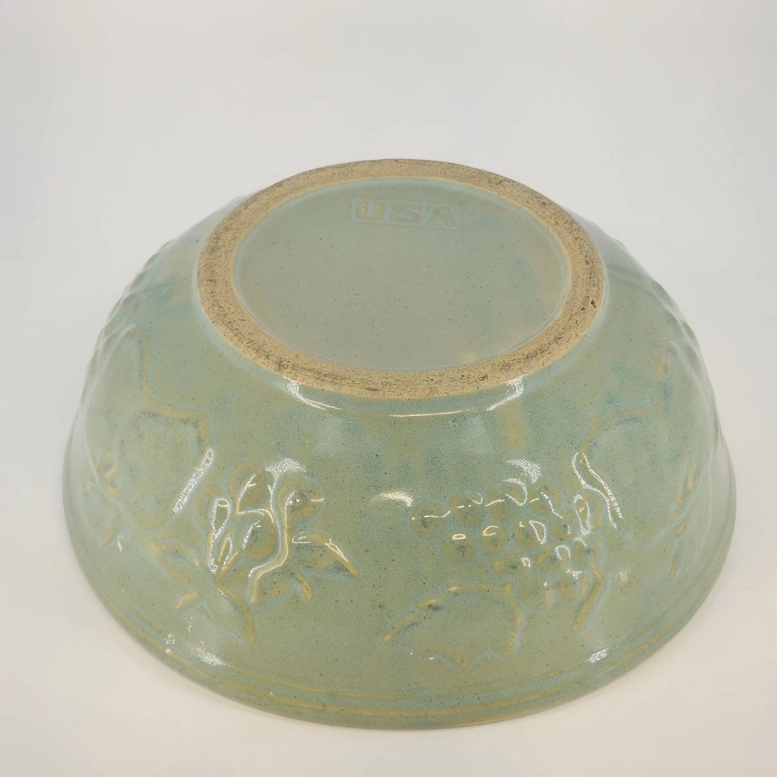 Stoneware Pottery Serving Bowl McCoy USA Seafoam Green Embossed Fruit Grapes 9"