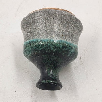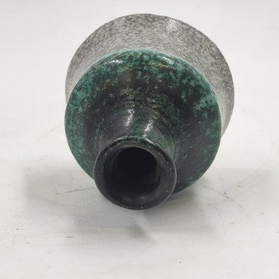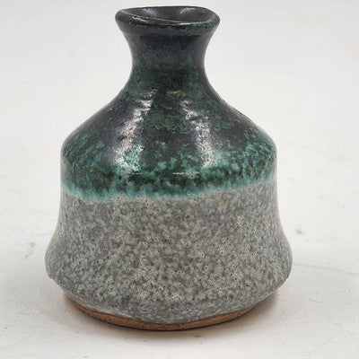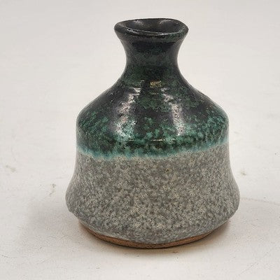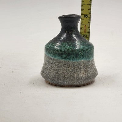 Studio Art Pottery Stoneware Small Bud Vase Green Over Gray 2.75"d x 3"h