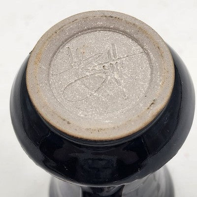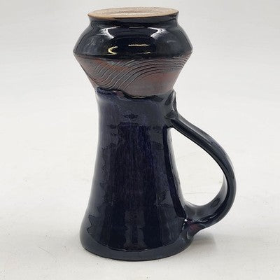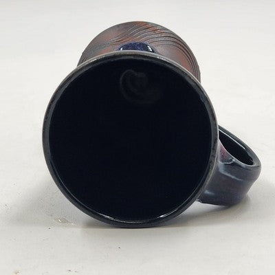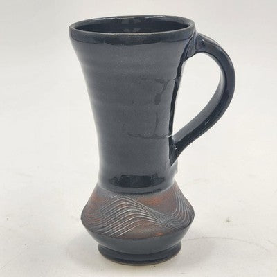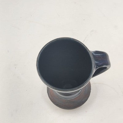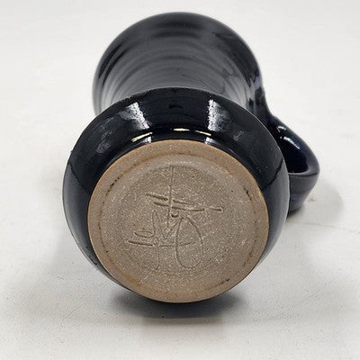 This beautifully crafted handmade pottery mug by artist John Scott features a rich cobalt and purple glaze with incised detailing. Signed by the artist, the piece showcases earthy craftsmanship and vibrant artistry, perfect for collectors or everyday use.