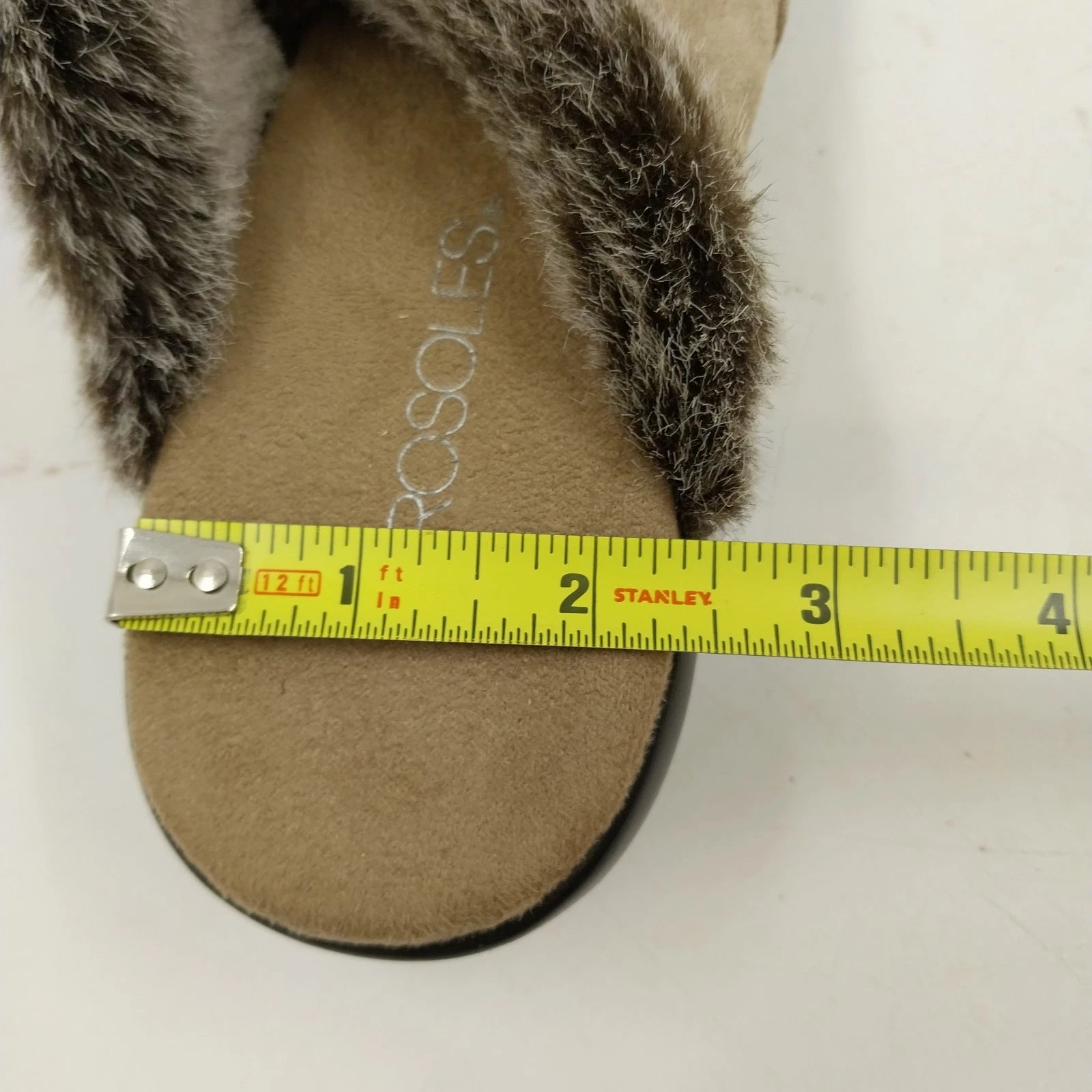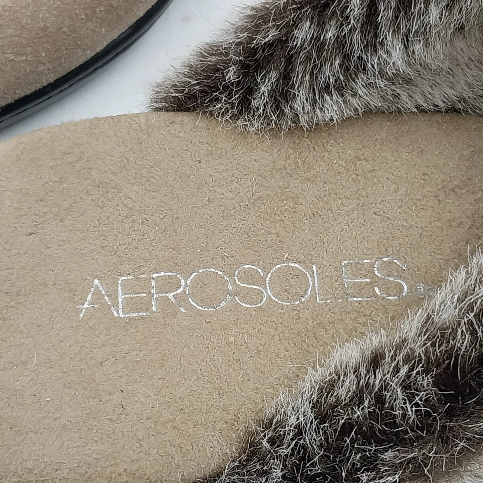 Suede Clog Shoes Women Size 8M Fur Trim Slip-On Aerology by Aerosoles Beige Faux