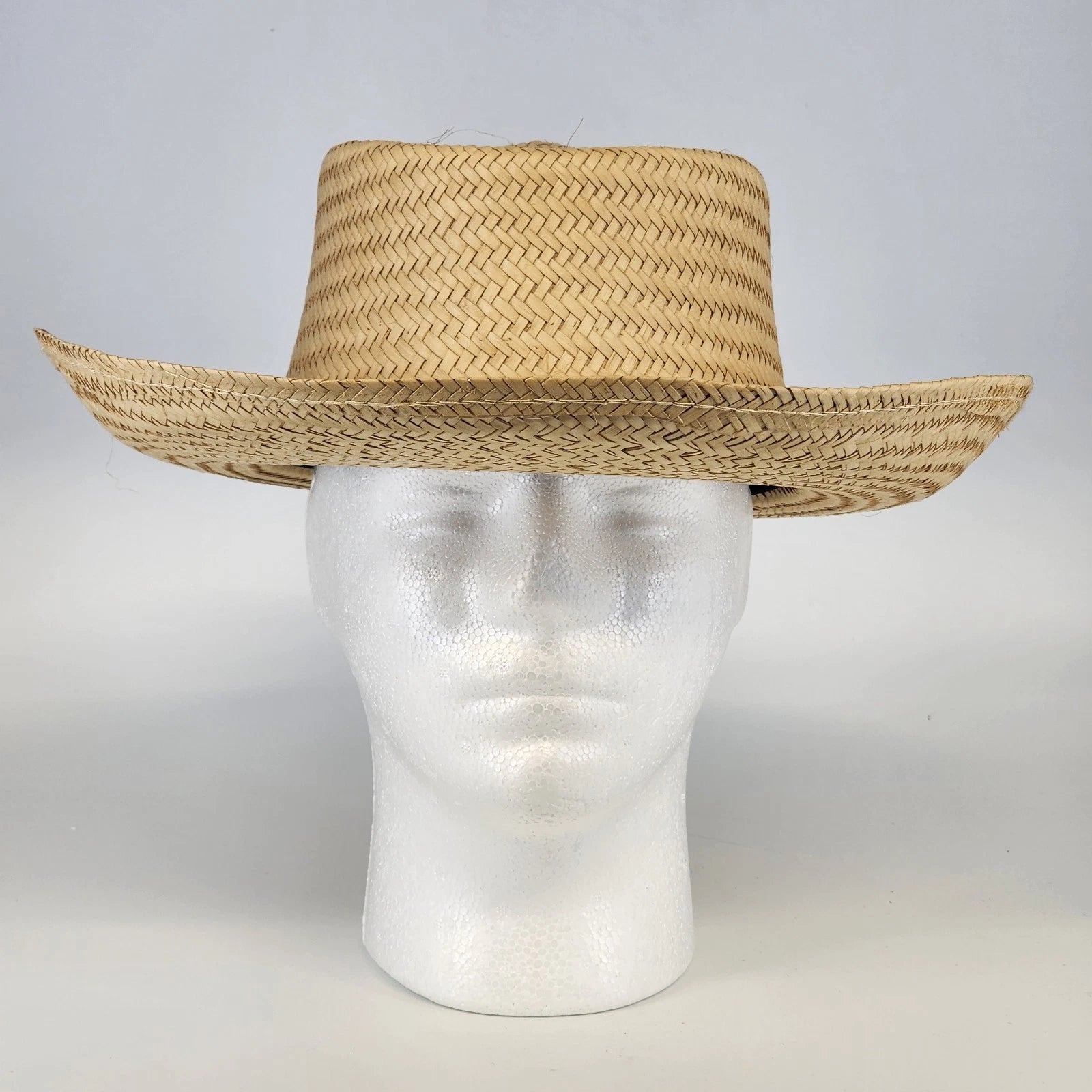 Sun Hat Straw Natural Woven Fedora Women’s Size Large Made in Mexico Wide Brim