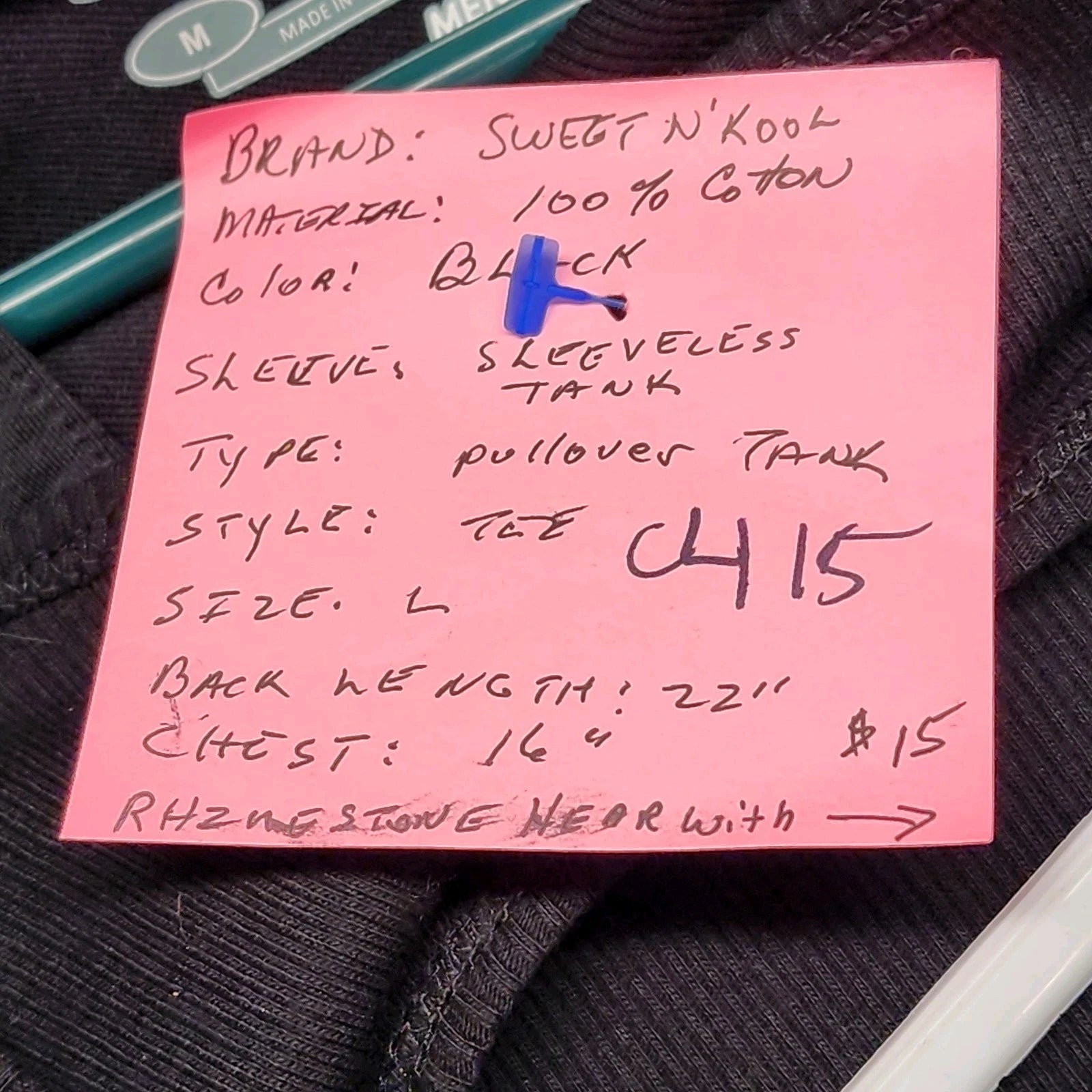 Sweet N' Kool Women's Large Black Tank Top 100% Cotton Ribbed Essential Knit Vtg