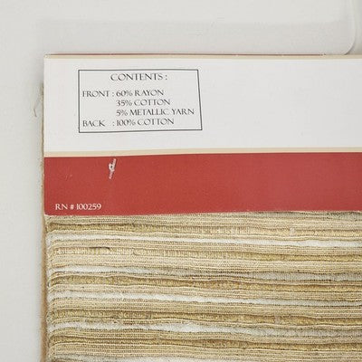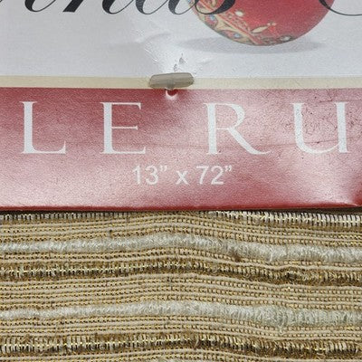 Elegant Tradewinds Designer Collection table runner in gold and white with tapered ends. Perfect for adding a refined touch to dining tables, buffets, or holiday displays.