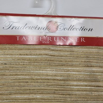 Table Runner Gold White Tradewinds Designer Collection Linen 13x72 Tapered Ends