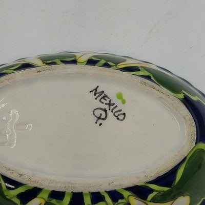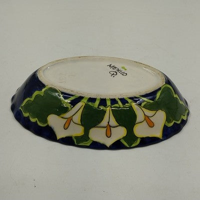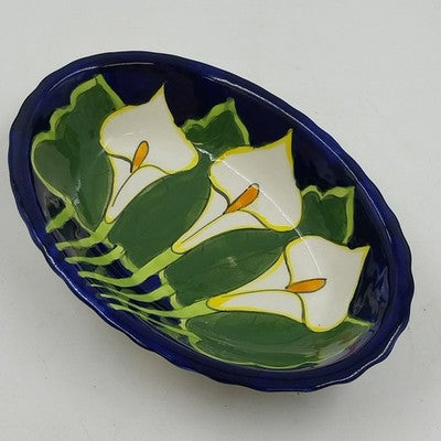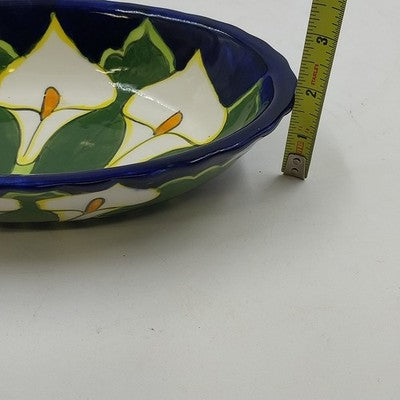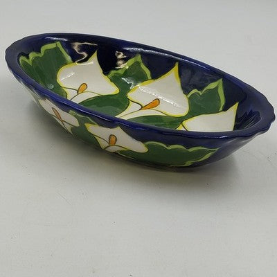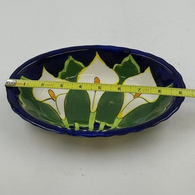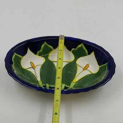 Talavera Calla Lilies Mexico Hand Painted Oval Bowl Art Pottery Signed Mexico Q