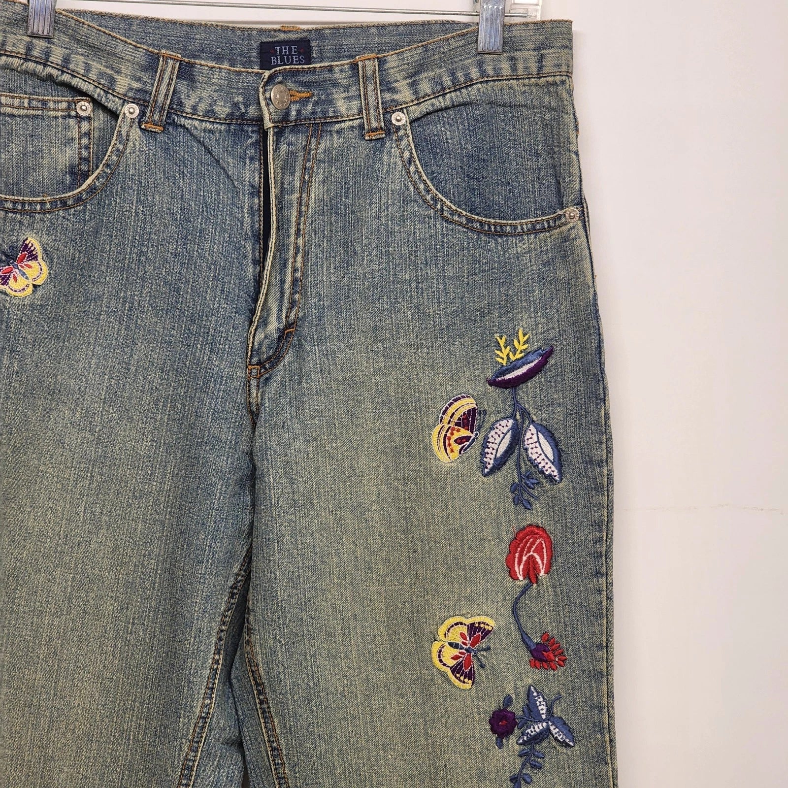 The Blues Missy Sz 10 Blue Denim Jeans 100% Cotton Embroidered Butterfly Flower