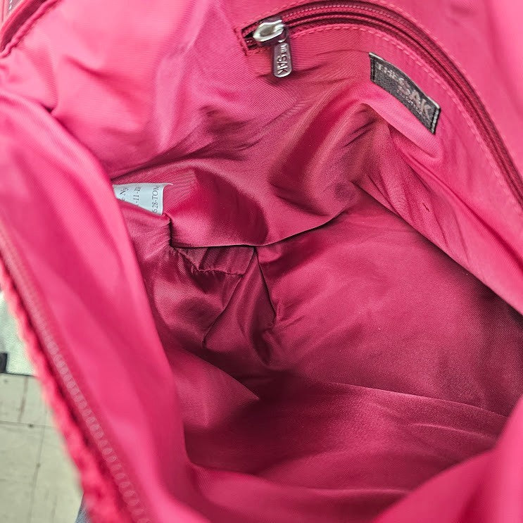 The Sak Red Woven Crochet Shoulder Bag Purse Leather Strap 12"x10"x6"