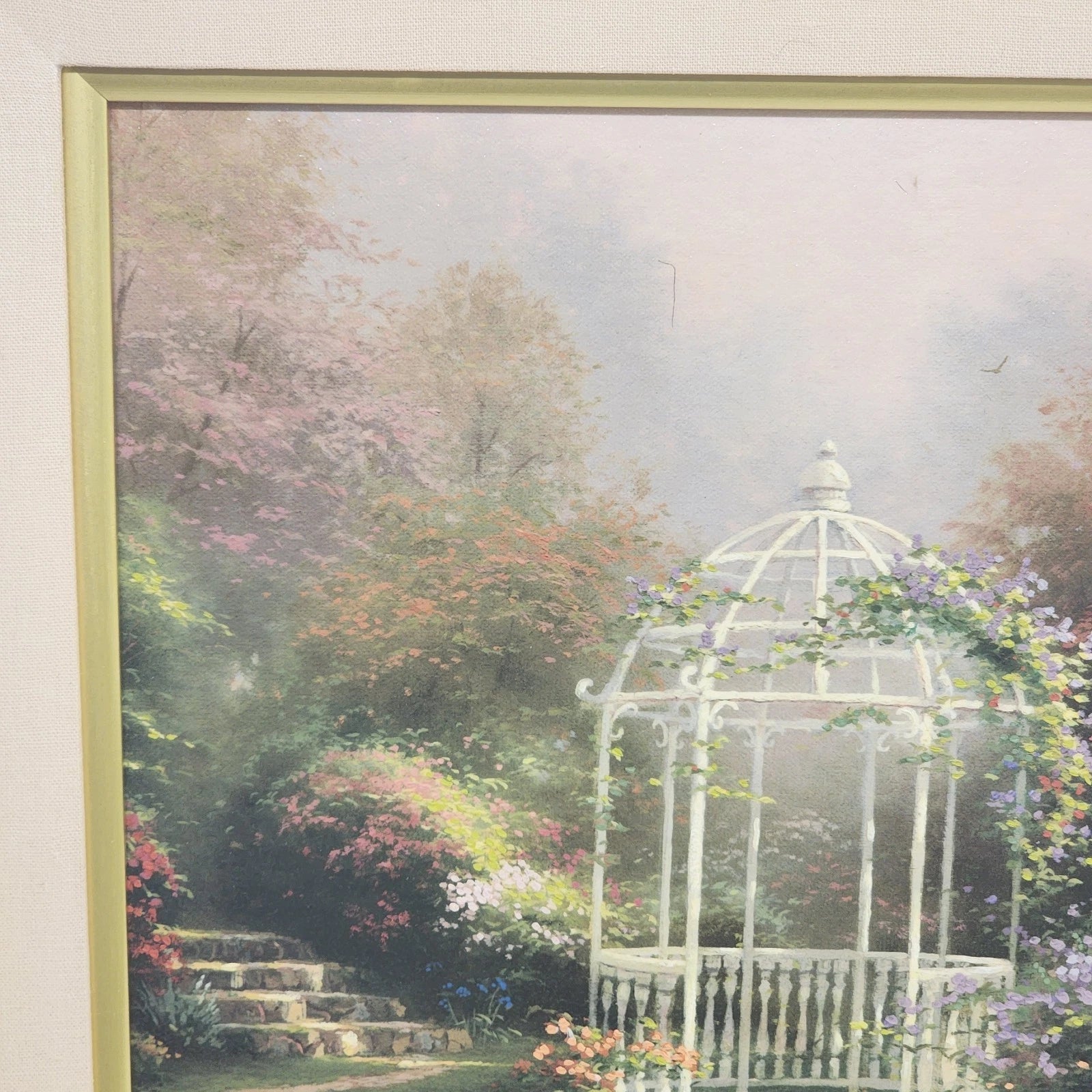 The piece is hand-retouched, giving it the texture and vibrancy of an on-easel original. It features a stunning lilac garden scene surrounding a white gazebo - a hallmark of Kinkade's serene, light-filled landscapes that evoke peace and nostalgia.