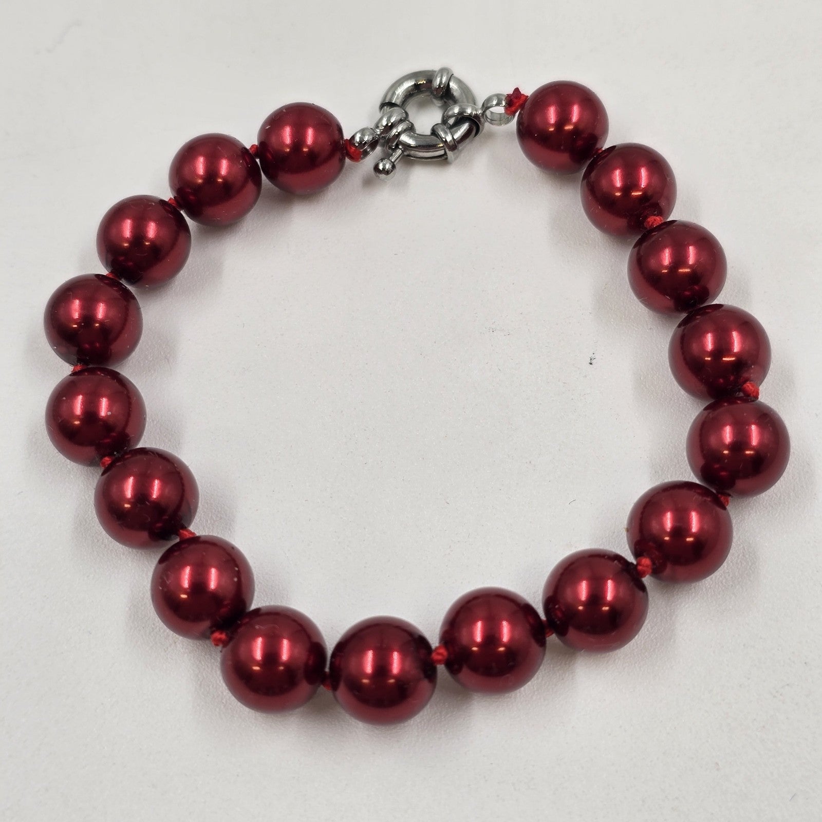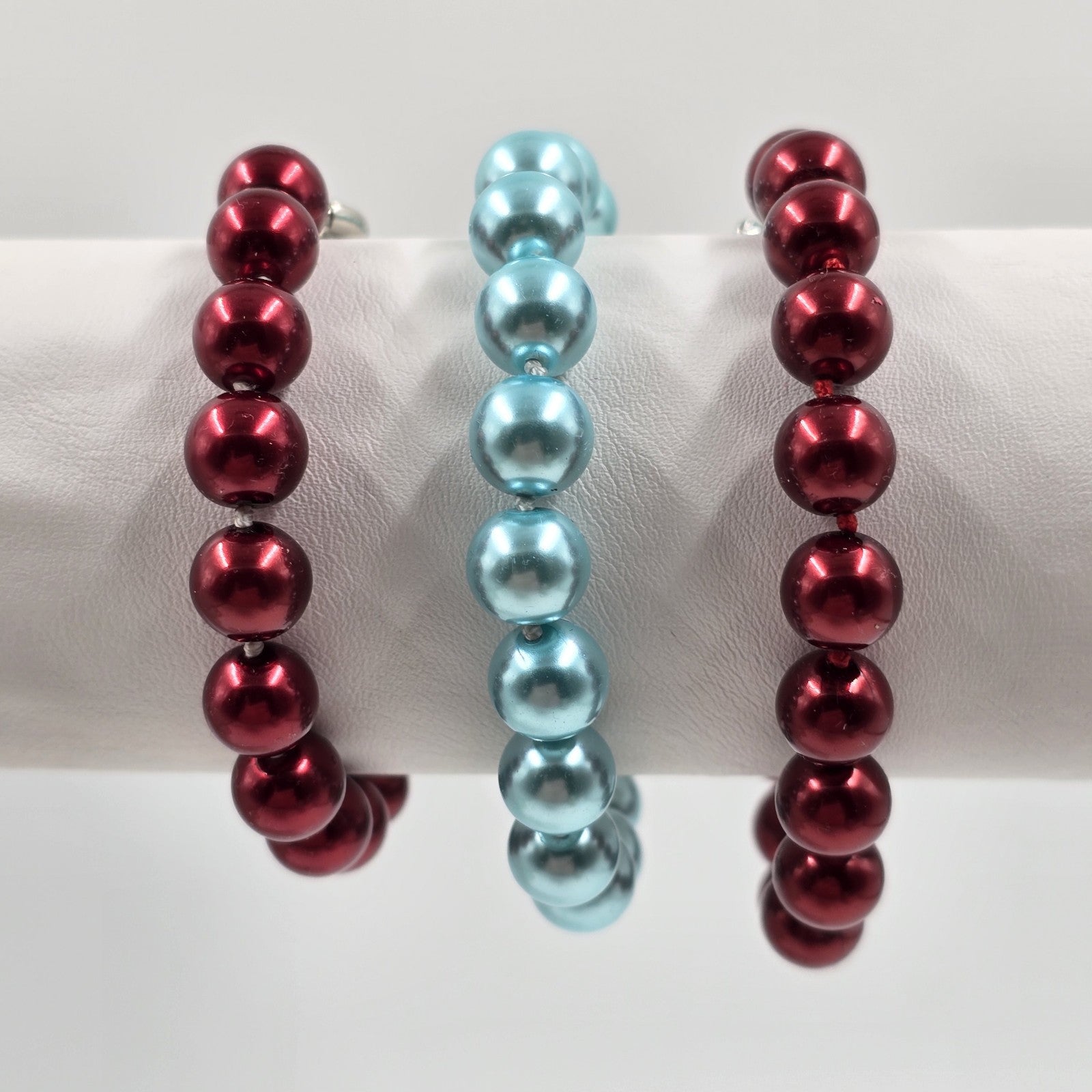 Set of 3 Shiny Red & Blue Faux Pearl Beads Bracelets Spring Ring Clasp