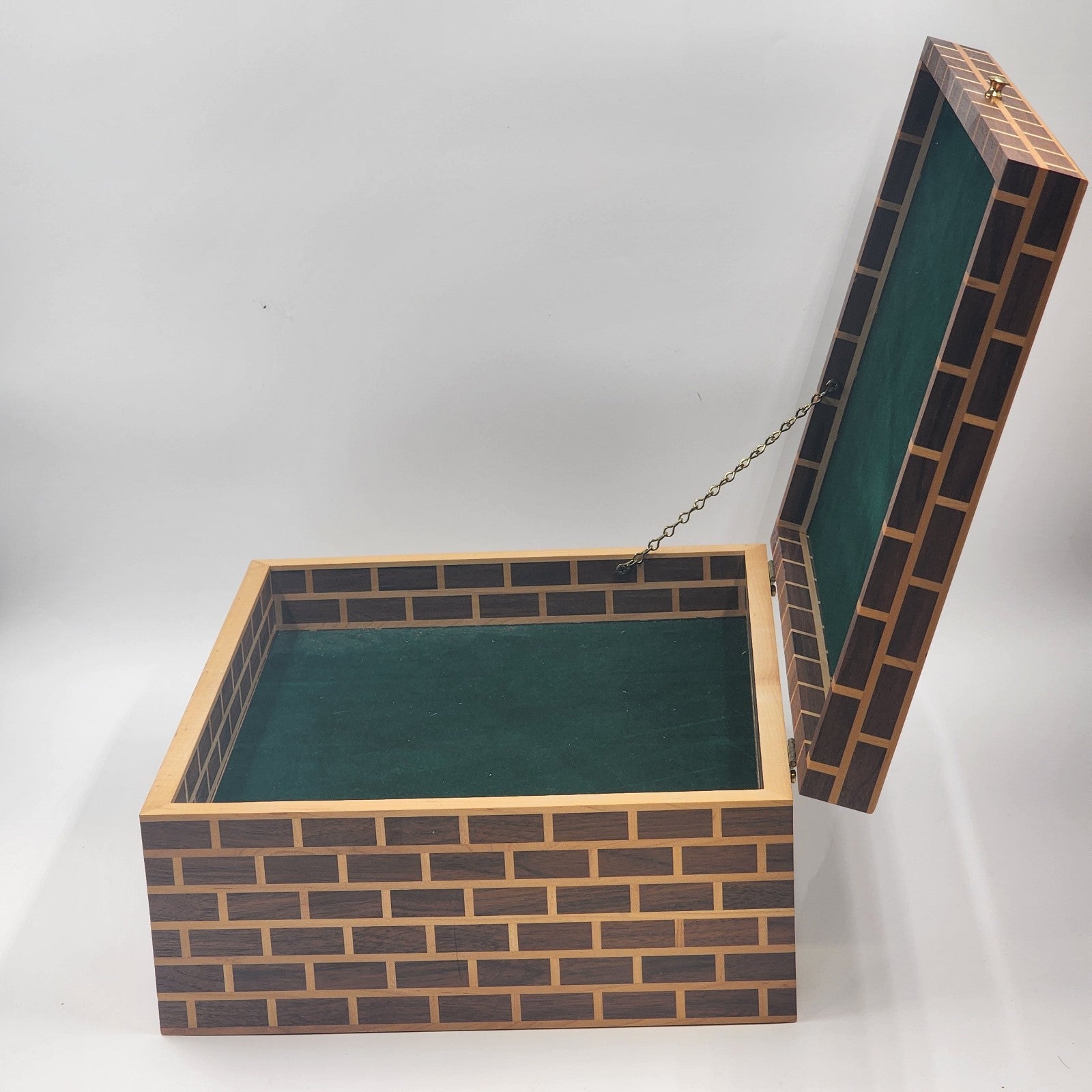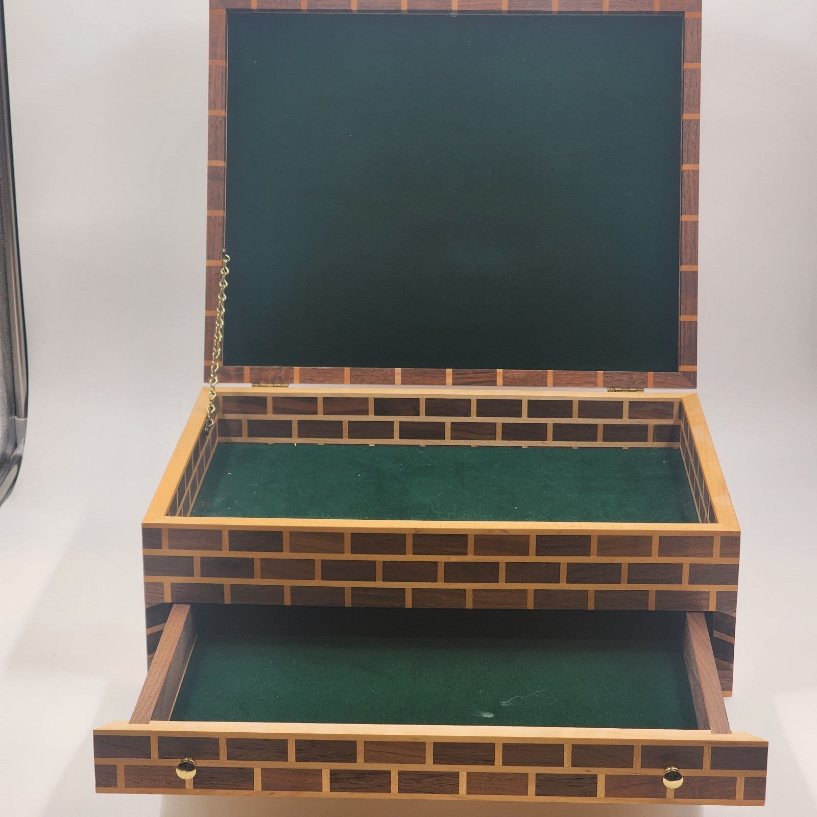 Thuya Moroccan Wood Large Jewelry Box – Handmade 17” Brick Design with Starburst Inlay Lid – Green Felt Lined – Artisan Keepsake Storage Chest