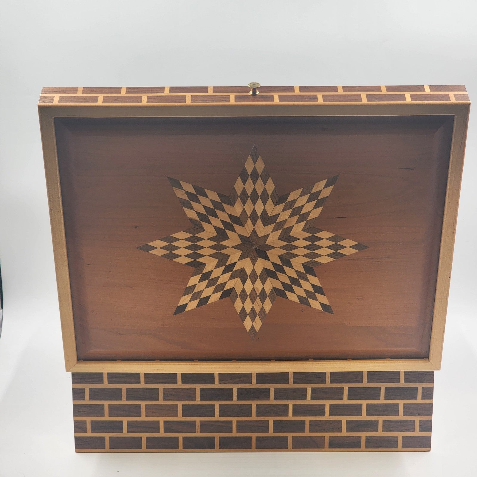 Design: Brick pattern on sides with a detailed starburst inlay on top