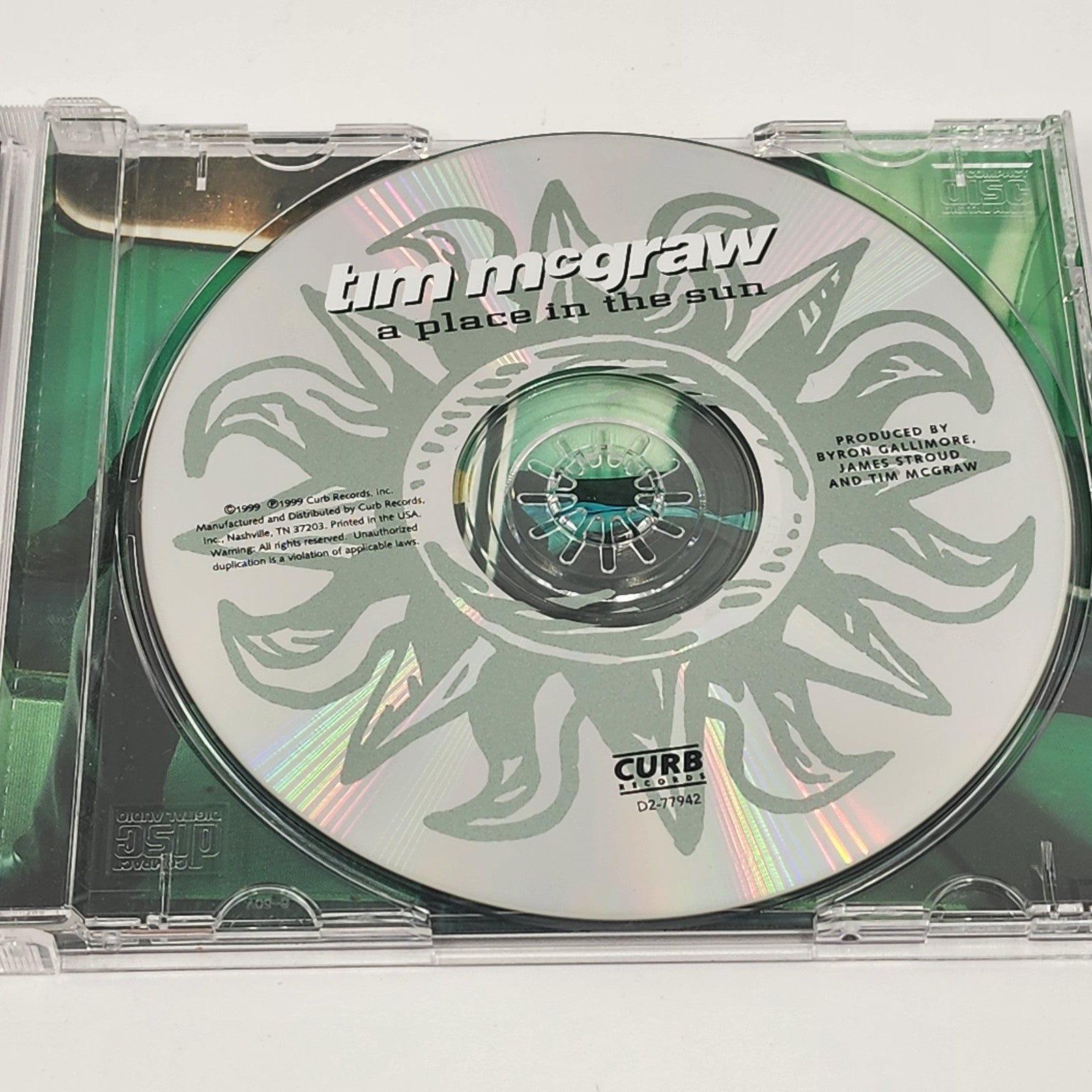 This Tim McGraw CD collection features four iconic albums, showcasing his signature country music style. The set includes Tim McGraw, A Place in the Sun, Everywhere, and Greatest Hits. Released by Curb Records, the CDs come in standard jewel cases with Very Good Plus condition grading, making this collection perfect for fans and collectors of country music.