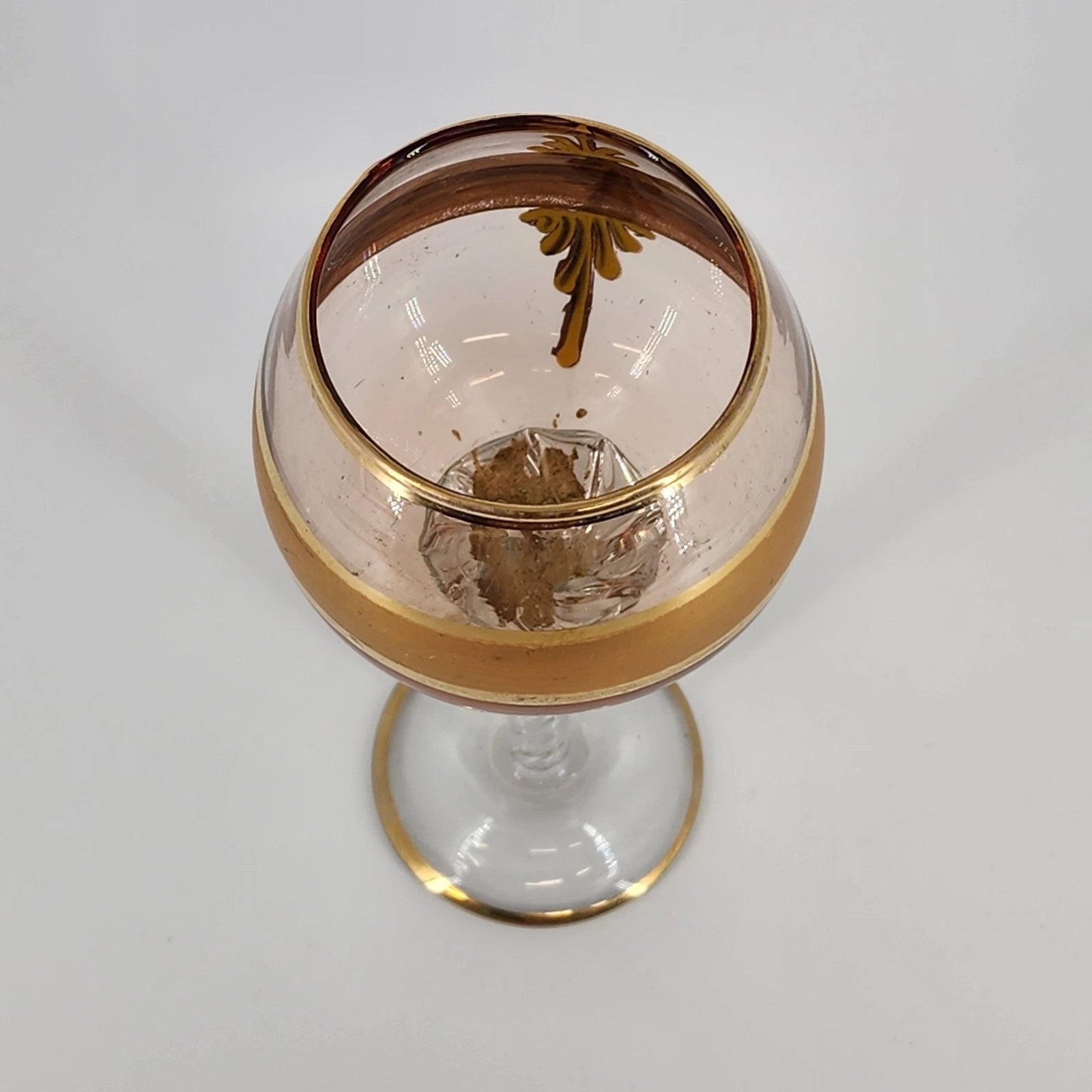 Tre Fuochi Glass Wine Goblet Murano Style Hand Blown Gold Enamel Ruby Red Jewel