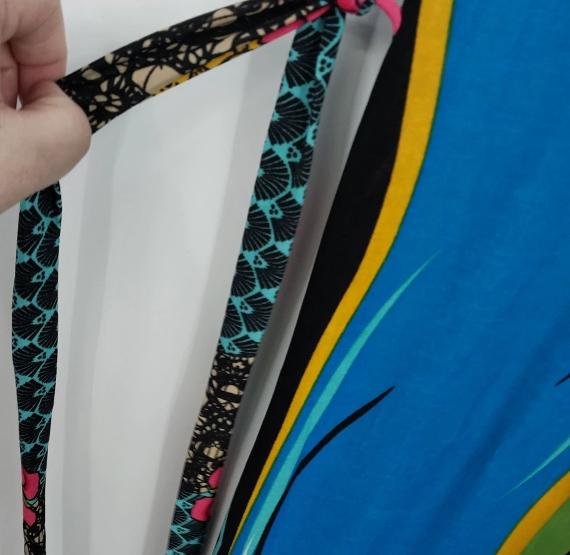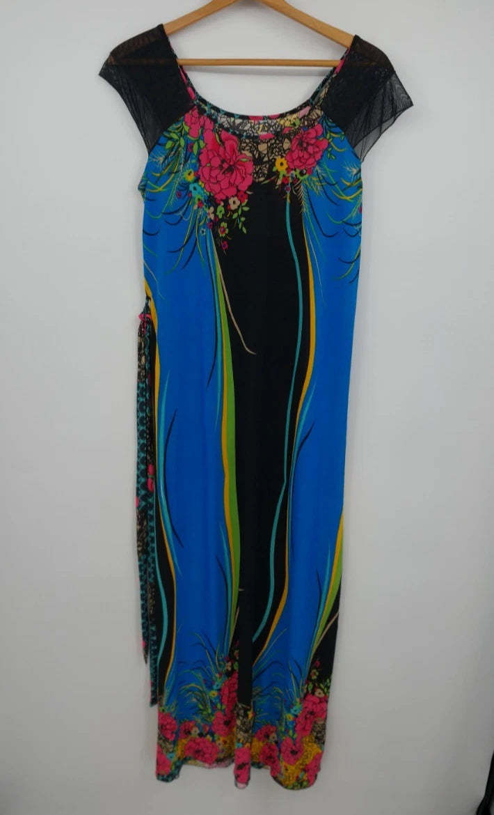 Tropical Floral Silk Maxi Dress M-L Caftan Mrs Roper Style Long Summer Belt