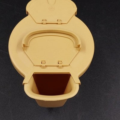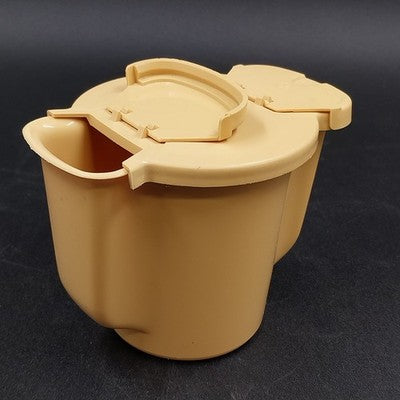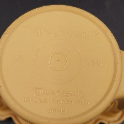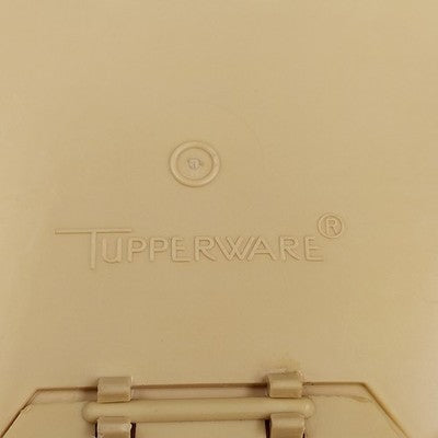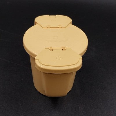 Classic and functional, this vintage Tupperware sugar bowl in harvest beige with gold tones features the iconic flip lid design and durable plastic construction. A must-have addition to any retro kitchenware collection!