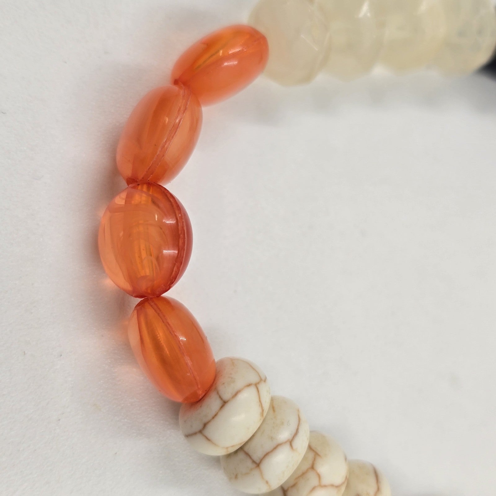 These elegant stretch bracelets feature multicolor faux pearl beads in shades of beige, black, red, white, orange, and clear, accented with gold-tone elements.