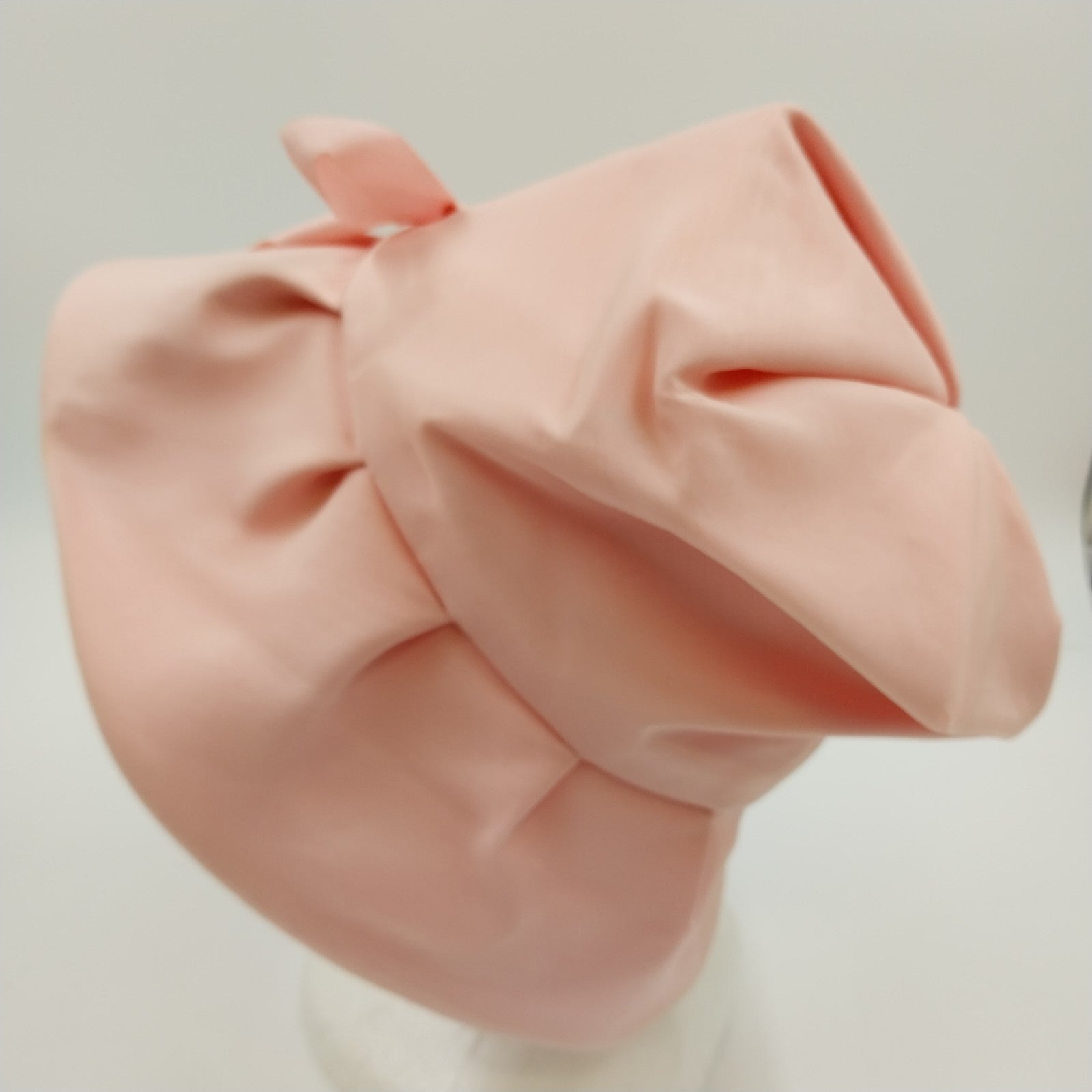 Add a touch of elegance to your summer style with this Union Made pale pink bucket hat. Featuring a wide brim for sun protection, soft pleats on the top and brim, and a charming ribbon bow on the side, this hat is perfect for warm-weather outings.