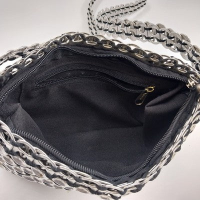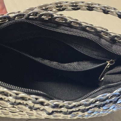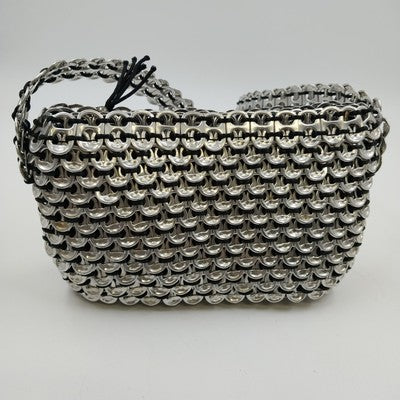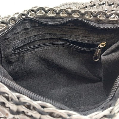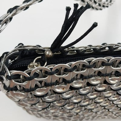 Unique Clutch Purse Shoulder Bag Pop-Top Aluminum Can Tabs Silver Zipper Bag 8"