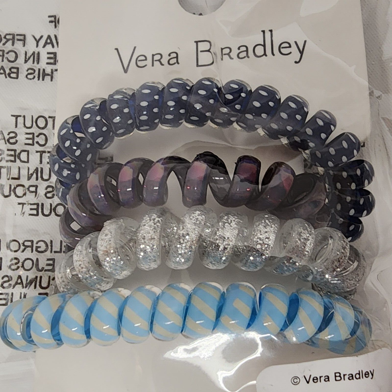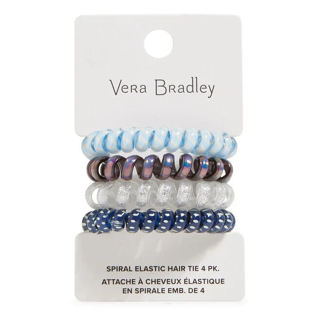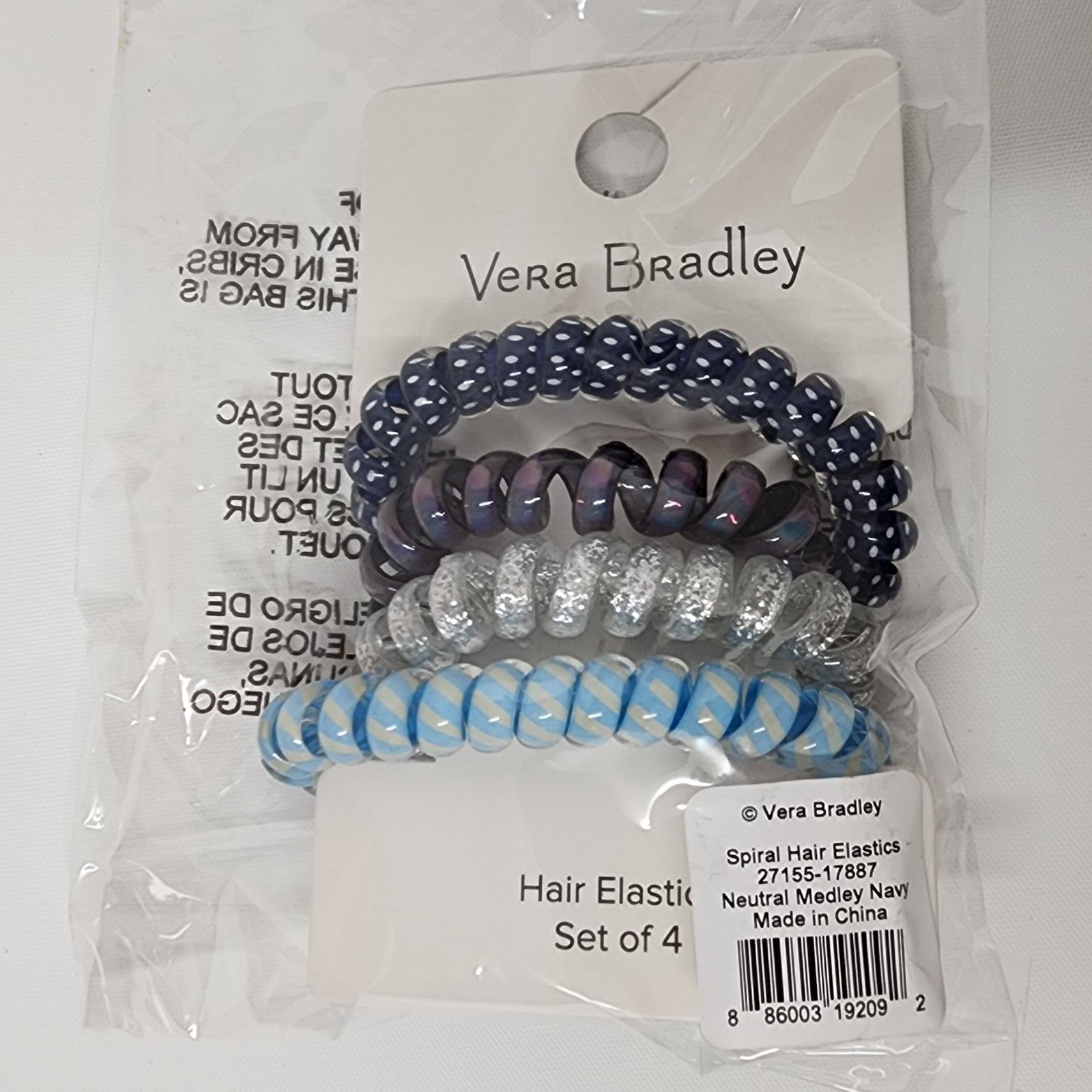 Vera Bradley Hair Elastic Spiral Twist Tie Neutral Medley Navy 4 Pack New