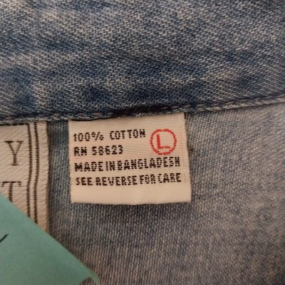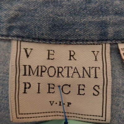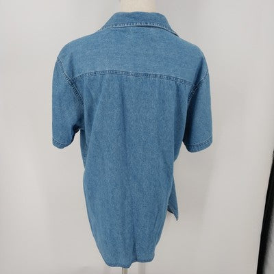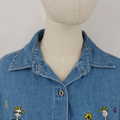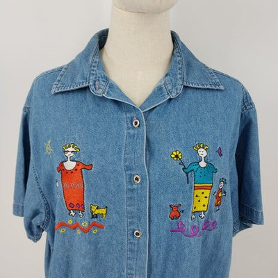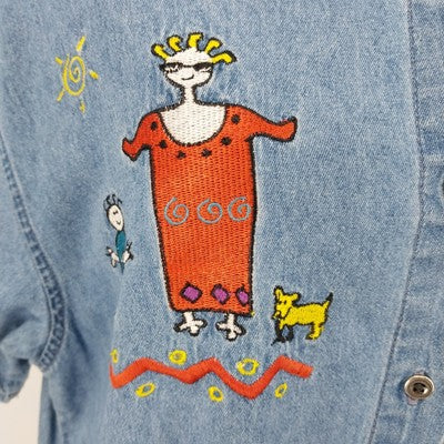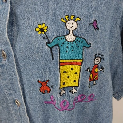 Very Important Pieces Women Denim Embroidered Whimsical Shirt Short Sleeve Large