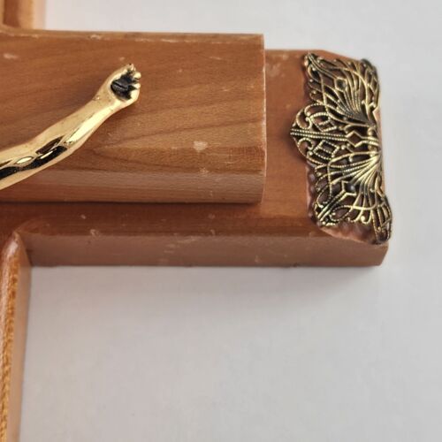 Vintage Crucifix Wooden Wall Hanging Candle Box Cross Catholic Religious Brass