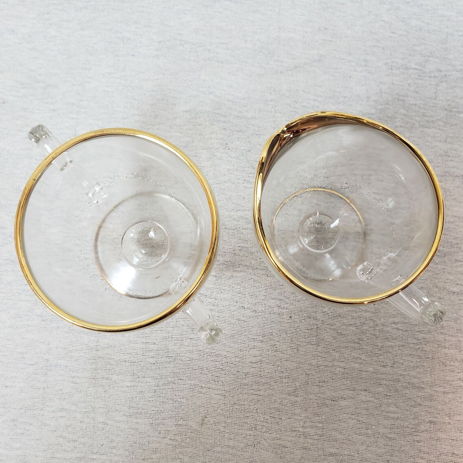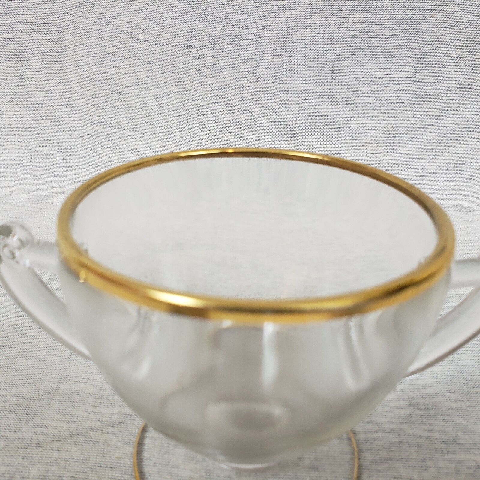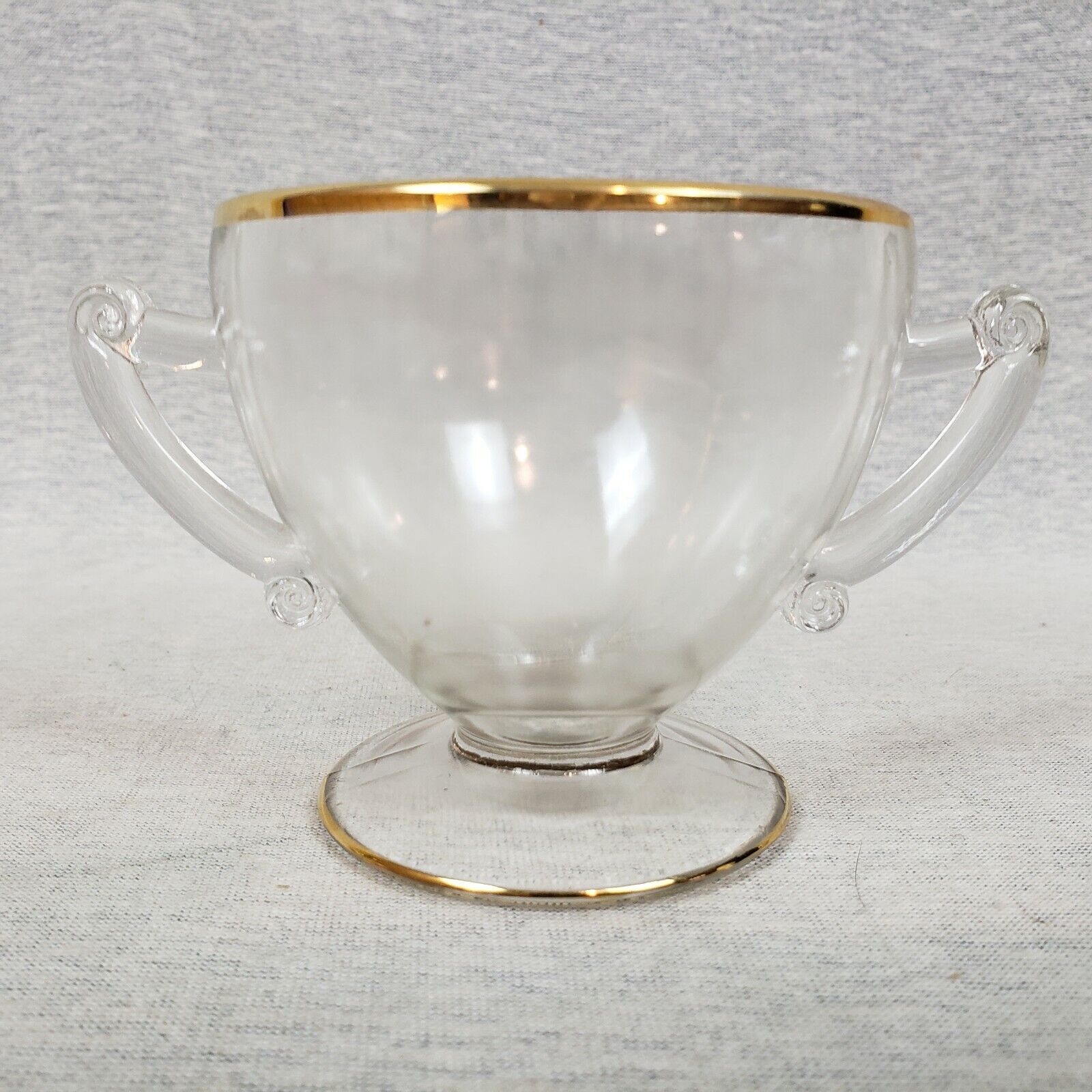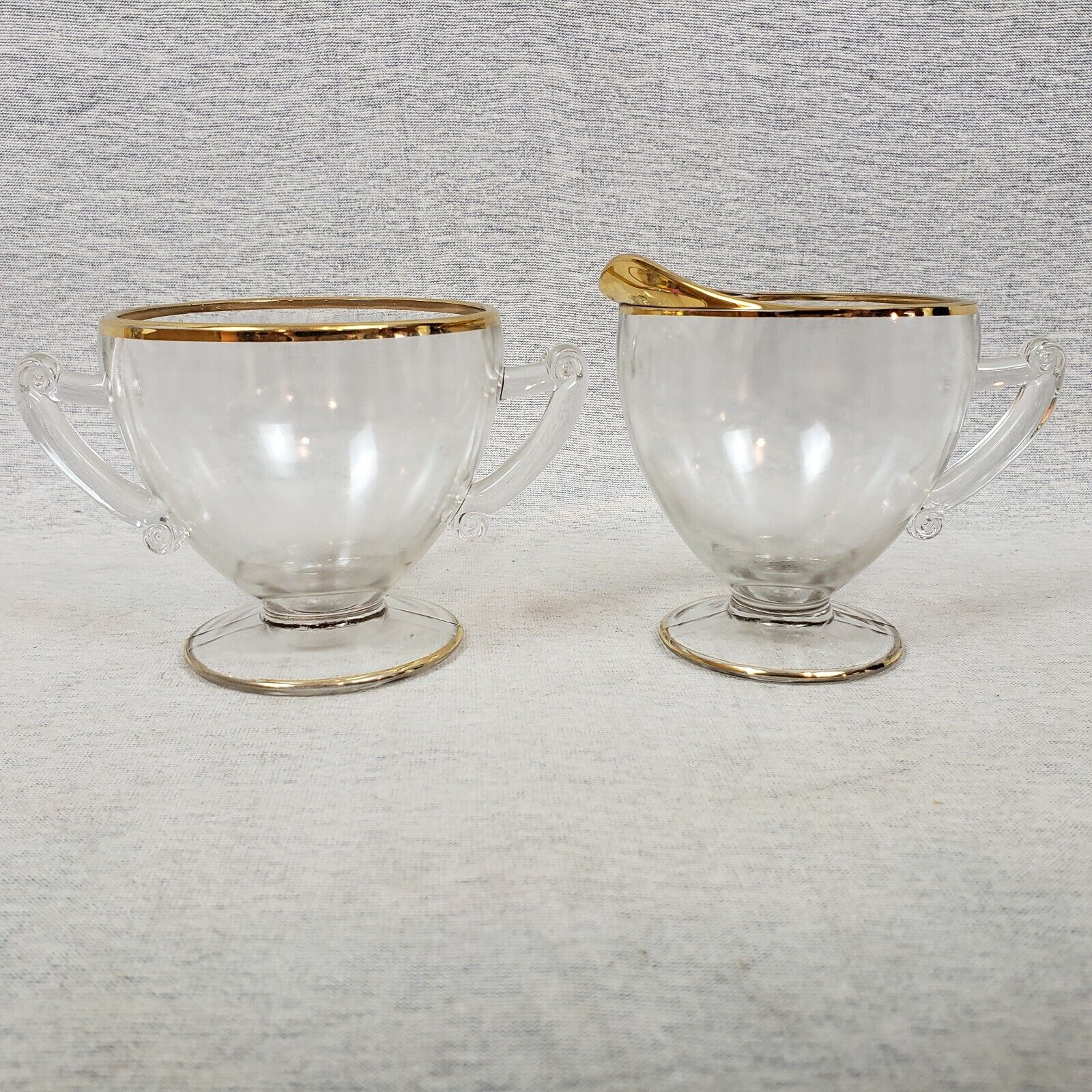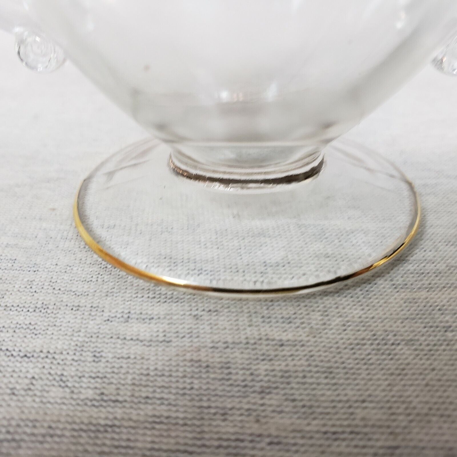 Crystal Elegant Glass Sugar Bowl & Creamer Gold Gilt Scroll Handle Vintage