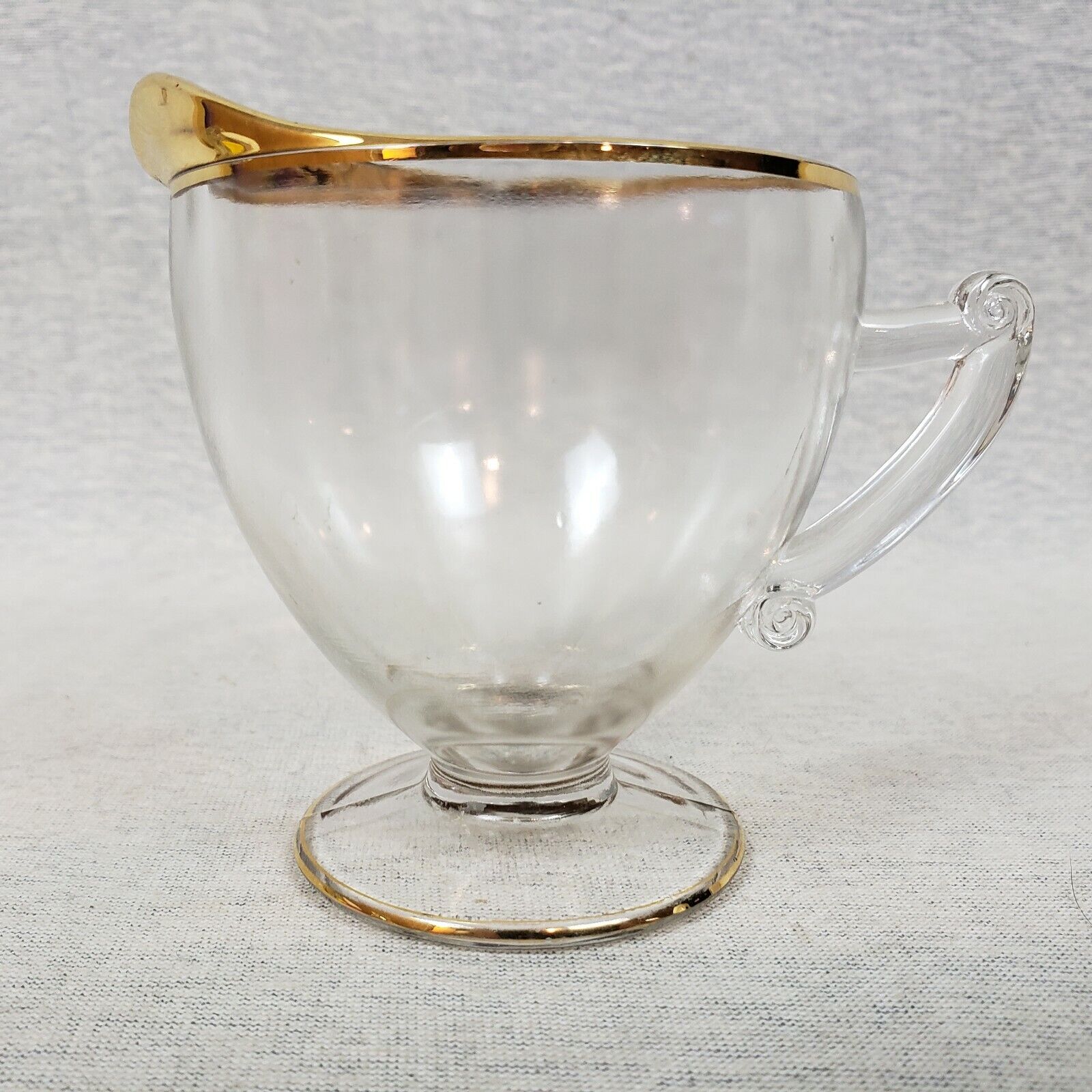 Vintage Crystal Elegant Glass Sugar Bowl & Creamer Gold Gilt Scroll Handle