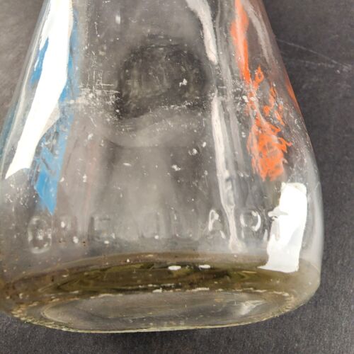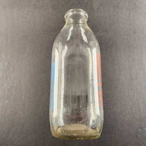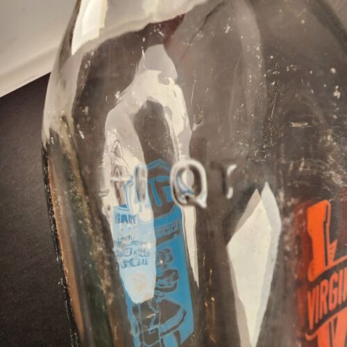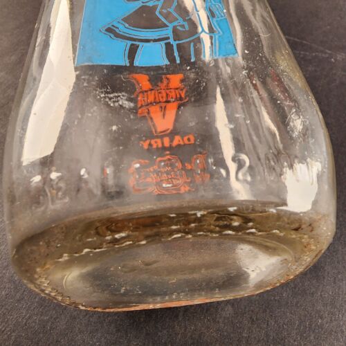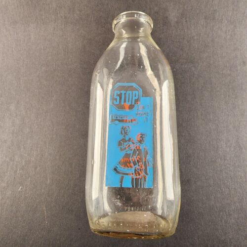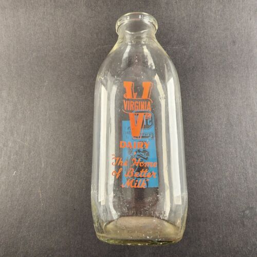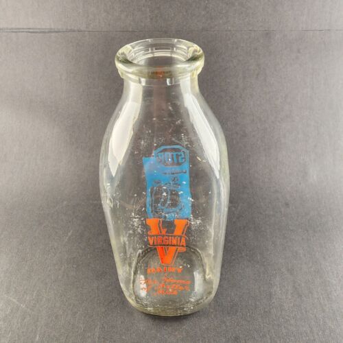 Virginia Dairy Glass Milk Bottle 1 Quart Orange and Blue Logos STOP School Bus