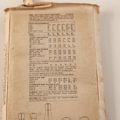 Vogue 8869 Vintage Sewing Pattern Size 22½ Women's Flowing Dress and Jacket