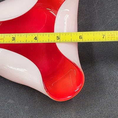 Wales Red & White Cased Glass Japanese 6" Biomorphic Bowl Vintage Mid-Century