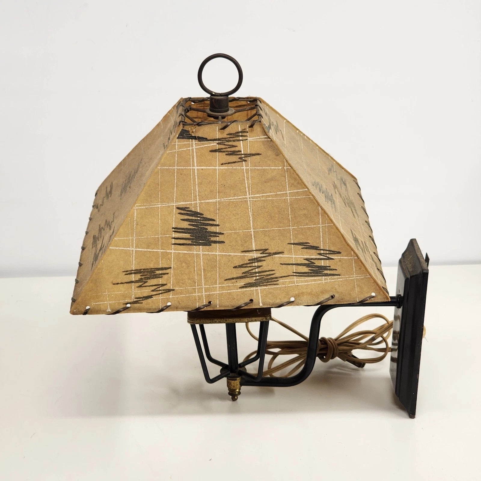 Wall Sconce Fiberglass Lamp Atomic Shade Plug-In Trapezoid 13" 1950's Light MCM