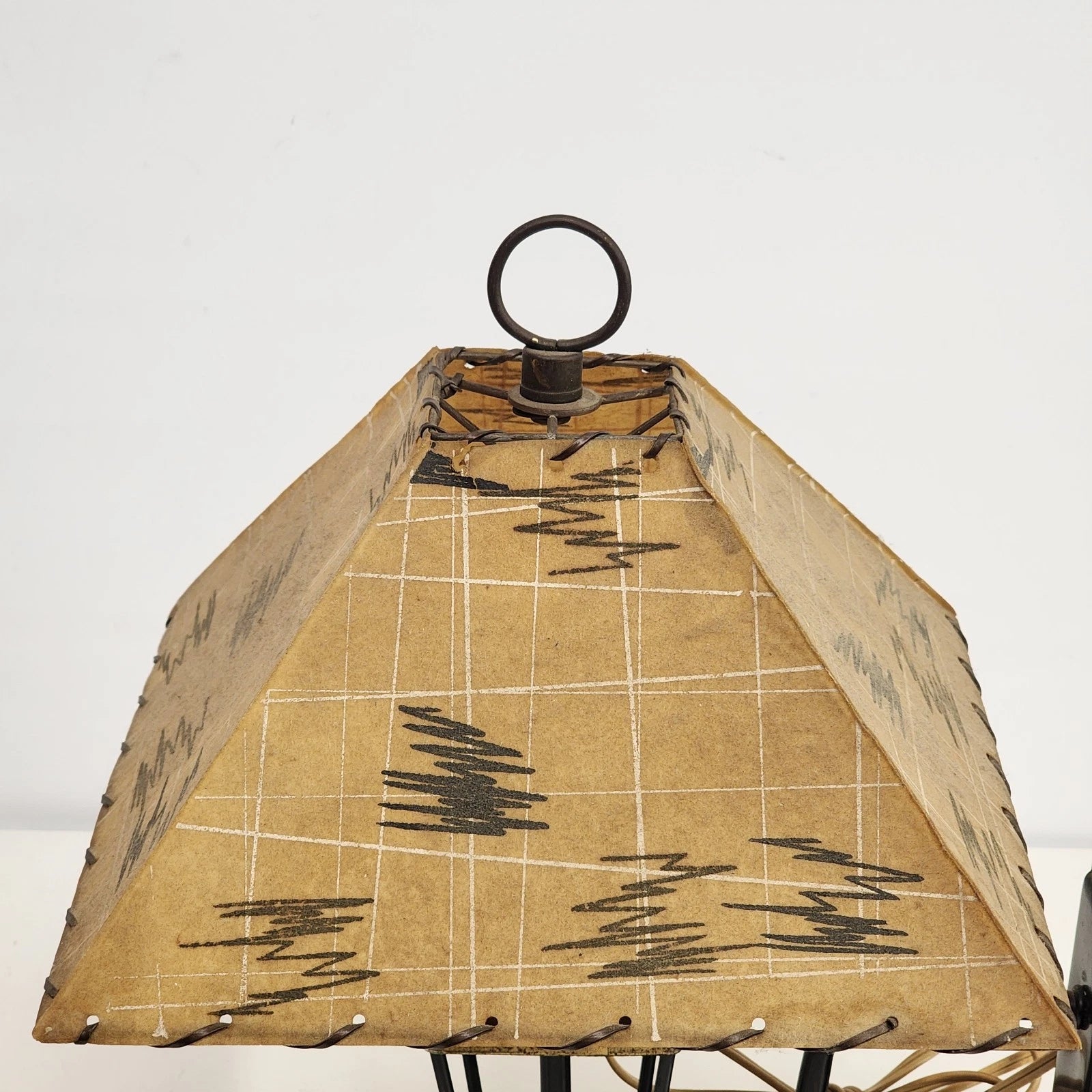 Construction: Metal iron mount with laced fabric/faux rawhide shade.