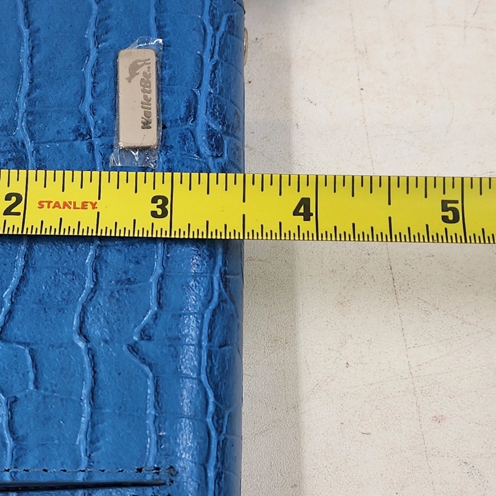 Simplify your life with this ultra-functional WalletBe Compact Wallet. Featuring a stylish blue snakeskin-textured faux leather finish, this wallet is designed to organize everything from your ID and coins to your credit cards and cash without the bulk of a full-sized purse.