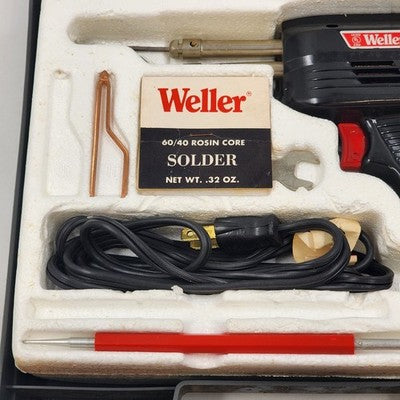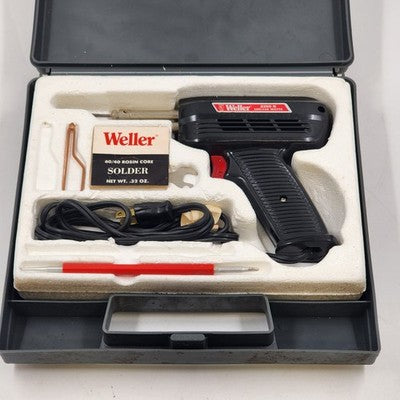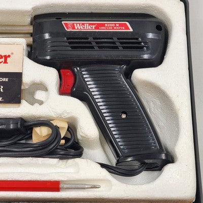 A classic Weller soldering gun, model 8200 N, featuring dual heat settings for versatile use. Comes in its original case, tested and in working condition-perfect for collectors or hobbyists who appreciate quality vintage tools.