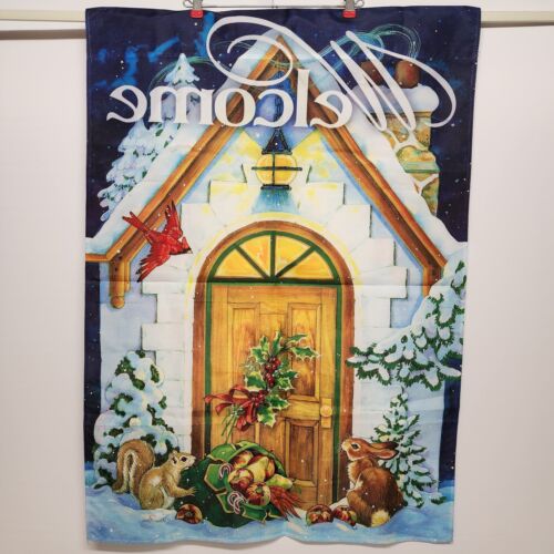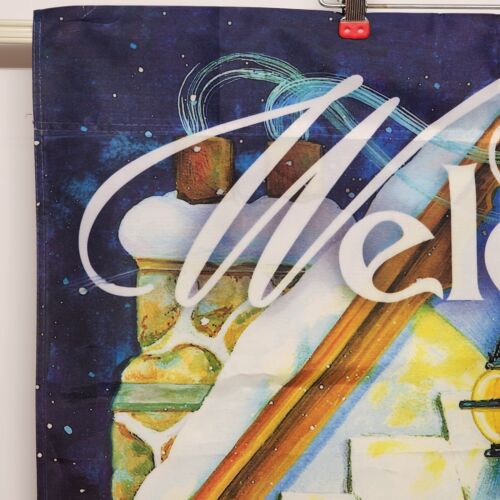 Winter Cottage House Flag Briarwood Lane by Donna Race 28" x 40" Vintage