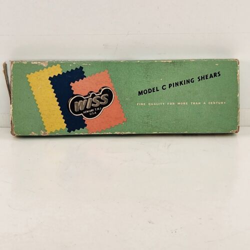 This is a vintage Wiss pinking shear model CB9 with a 9" blade length. It comes in its original box and is a great addition to any sewing collection. Made in the United States, this shear is perfect for creating decorative edges on fabric. The item is in good condition and has been well-cared for over the years. Add this vintage original to your collection today!
