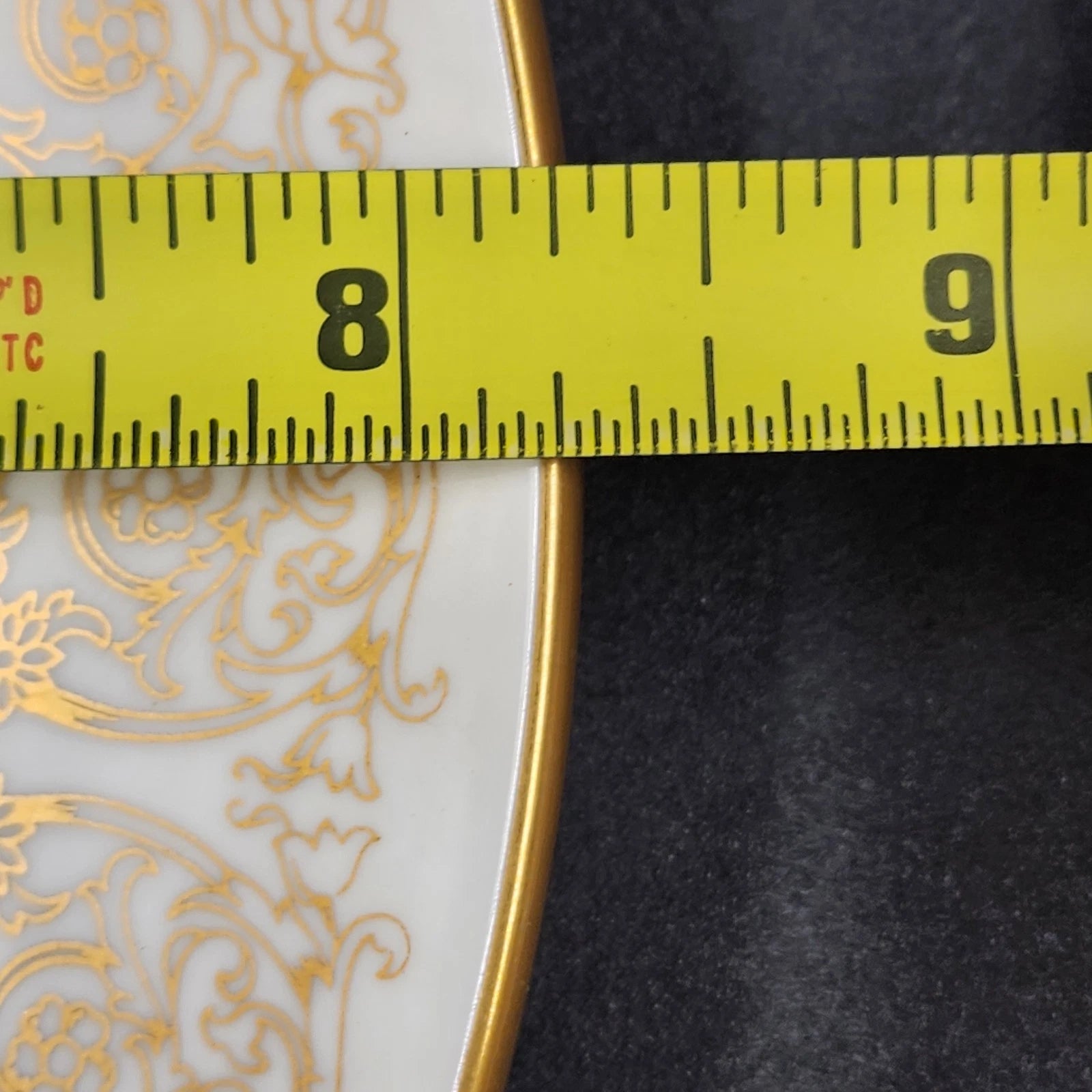 Part of the American Masterpieces Collection, this fine bone china plate was crafted in England and showcases exquisite detailing with 22K gold trim.
