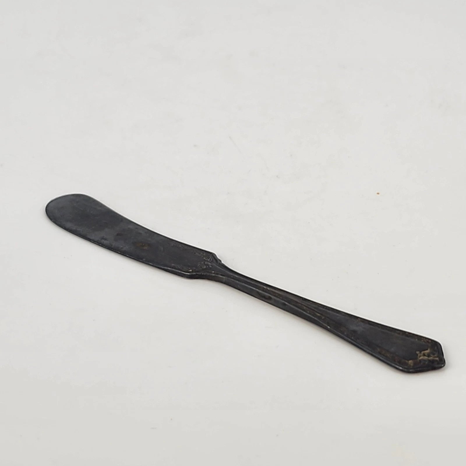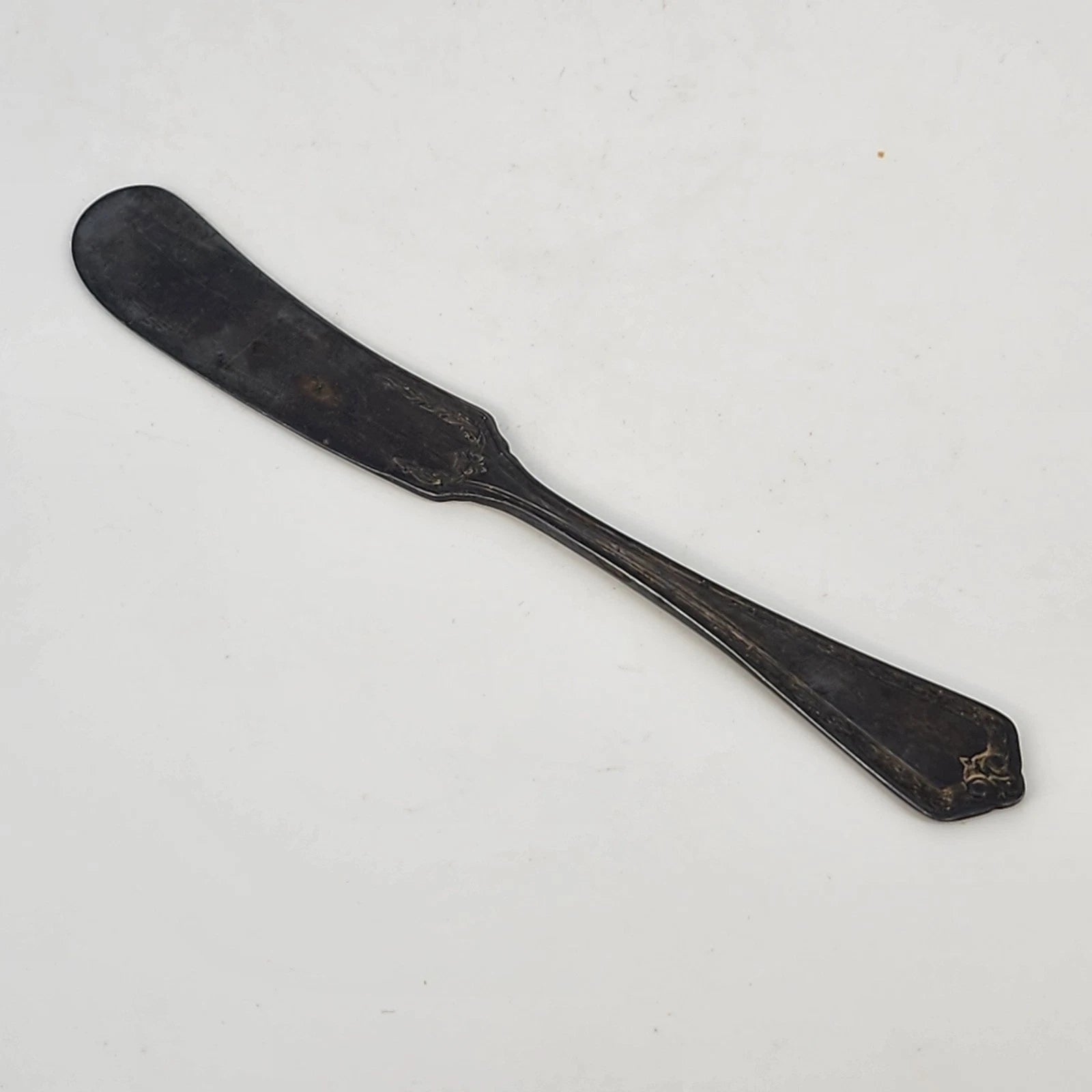 Add a piece of American history to your flatware collection with this antique silverplate butter knife by Wm. Rogers & Son. Patented on December 28, 1915, this 5.75-inch spreader features the delicate, flowing lines characteristic of the early 20th-century Art Nouveau period. The pattern is Silver Hampden, its classic Edwardian-era elegance makes it a versatile choice for any formal brunch or afternoon tea. Crafted with the quality silverplate that defined the Rogers brand, this knife remains in beautiful condition, ready to serve as a functional utensil or a charming display piece for antique silver enthusiasts.