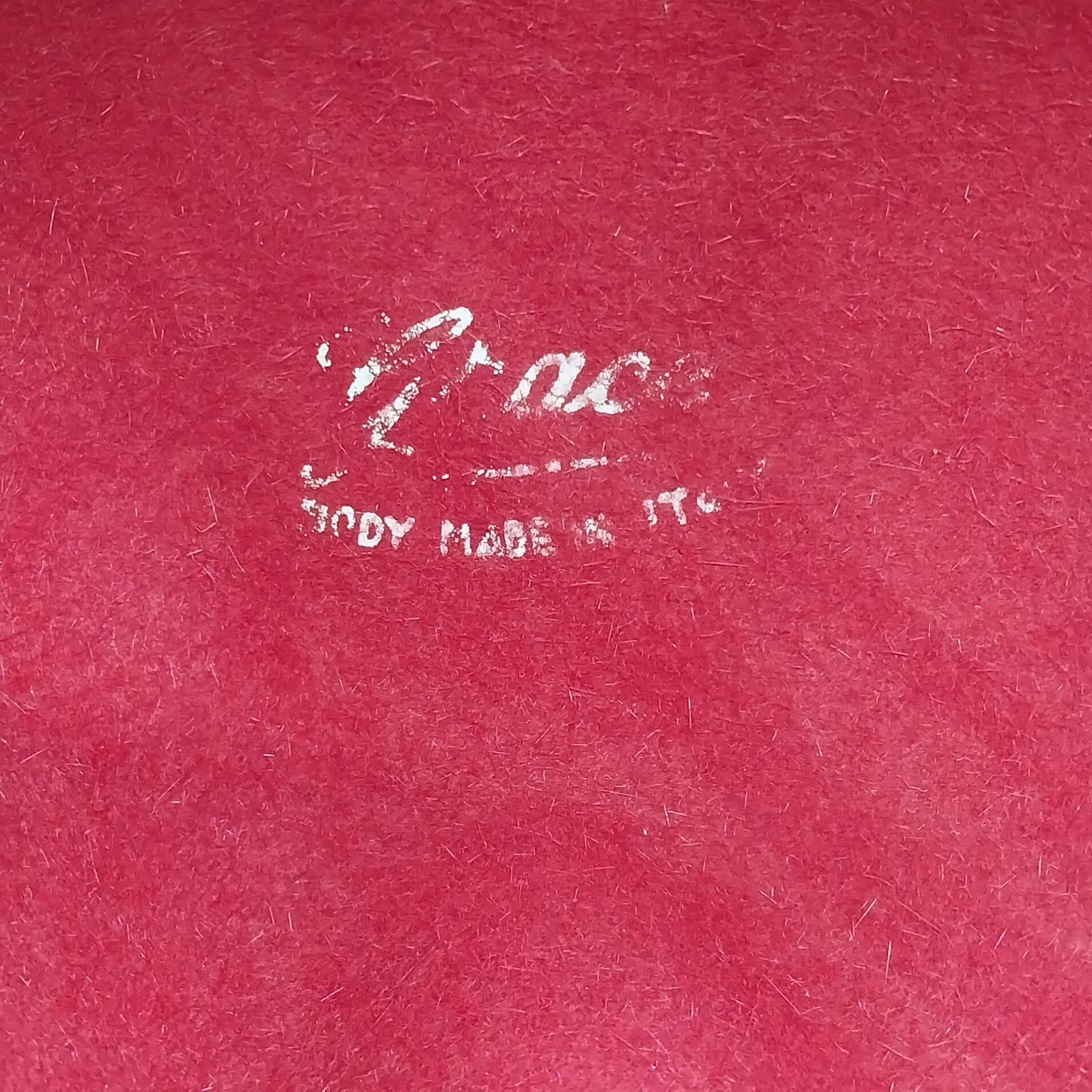 Women's Red Velvet Pillbox Hat By Replica de Parisienne Feather Accent Vintage